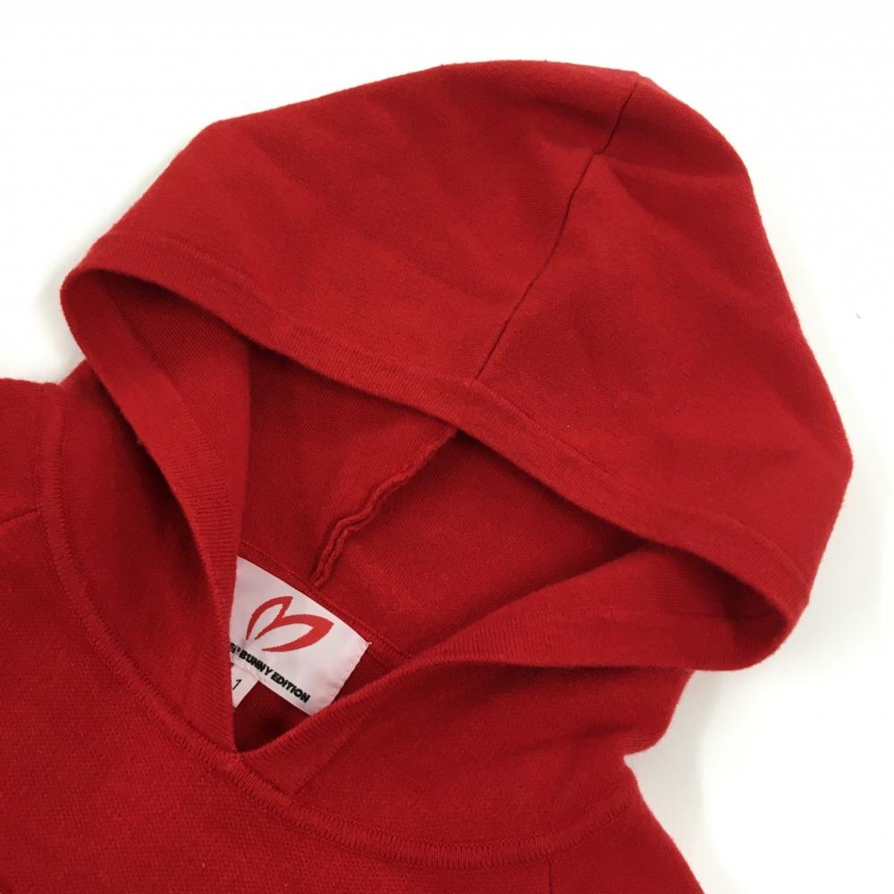【美品】マスターバニー フード付きセーター レッド 立体ロゴ ニットパーカー レディース 1(M) ゴルフウェア MASTER BUNNY EDITION