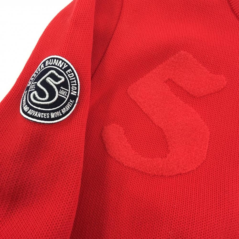 【美品】マスターバニー ニットジップジャケット レッド×ネイビー 5周年 レディース 1(M) ゴルフウェア MASTER BUNNY EDITION