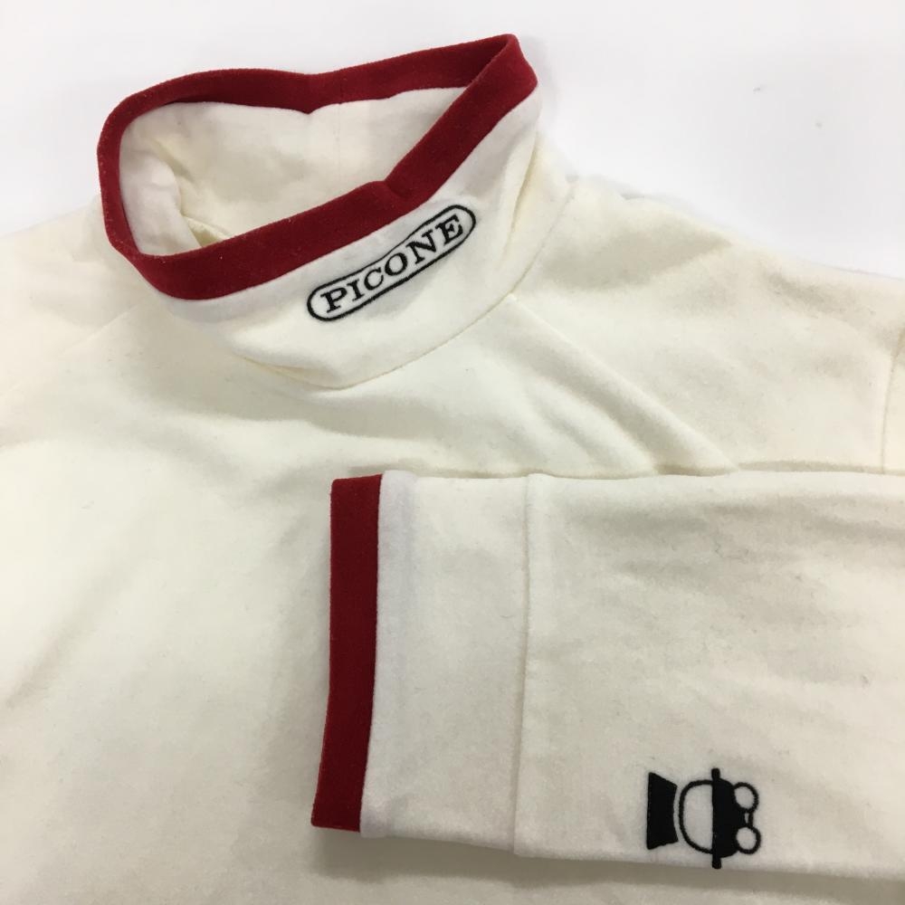 【美品】ピッコーネ 長袖ハイネックシャツ 白×レッド 表微起毛 アクリル混 レディース サイズ表記無し ゴルフウェア PICONE