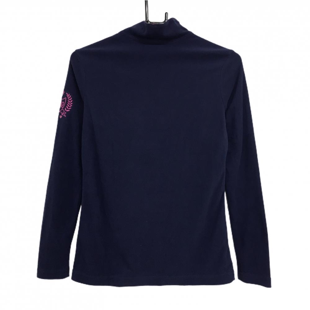 【美品】ビバハート 長袖ハイネックシャツ ネイビー×ピンク 微起毛 ロゴ刺しゅう レディース 40(M) ゴルフウェア VIVA HEART
