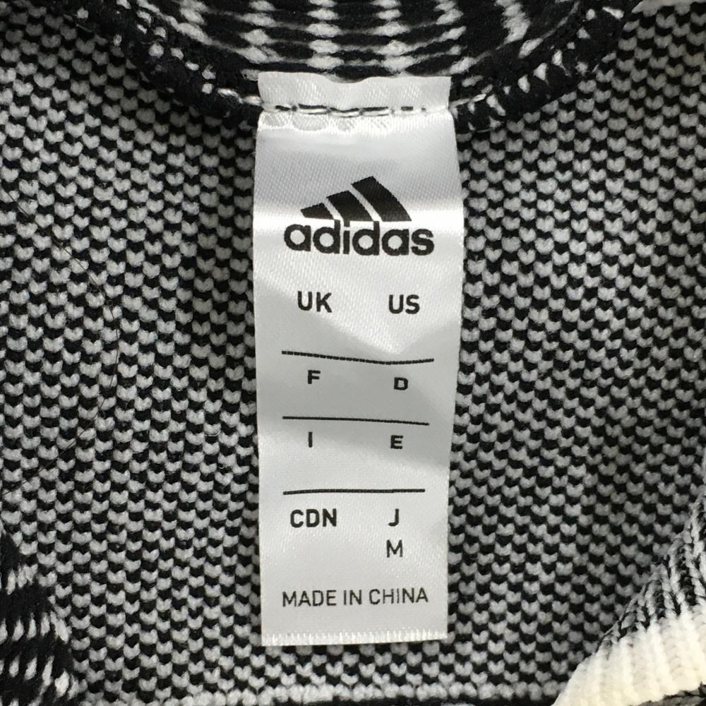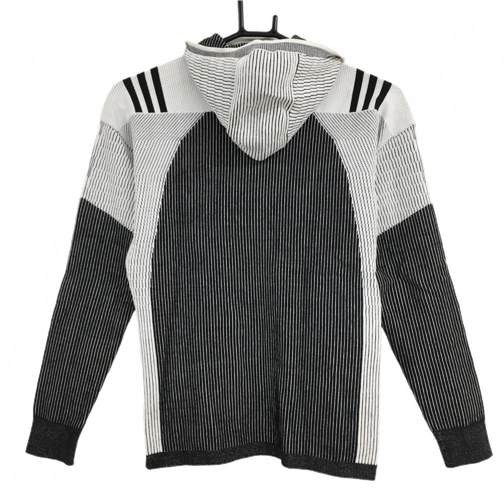 アディダス ニットジップパーカー 白×黒 ストライプ 肩3ライン レディース M ゴルフウェア adidas