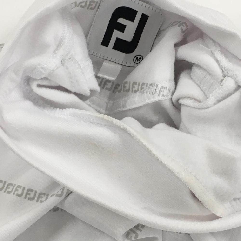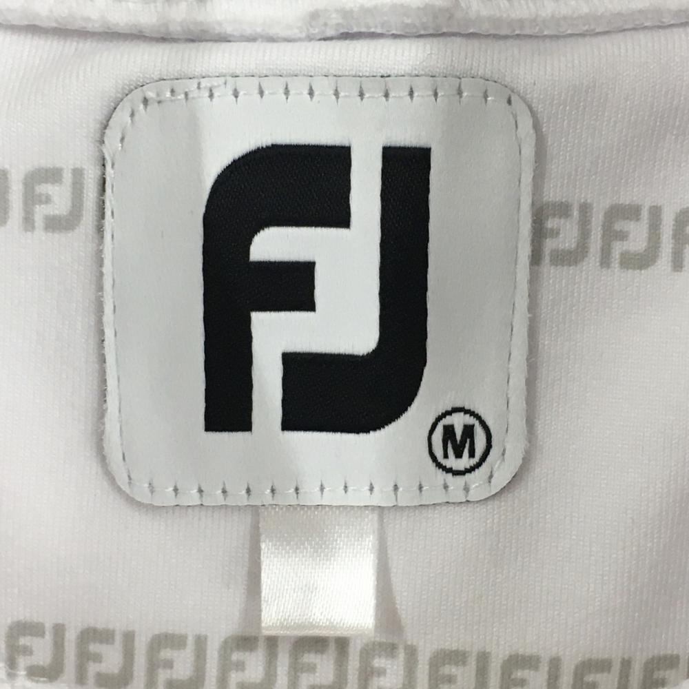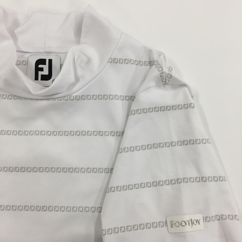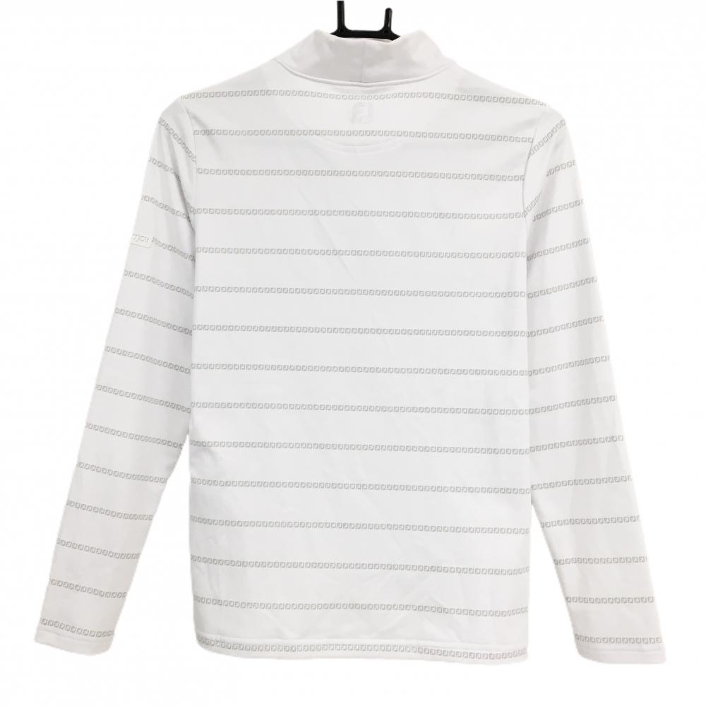 【美品】フットジョイ 長袖ハイネックシャツ 白×ライトグレー ロゴボーダー レディース M ゴルフウェア FootJoy