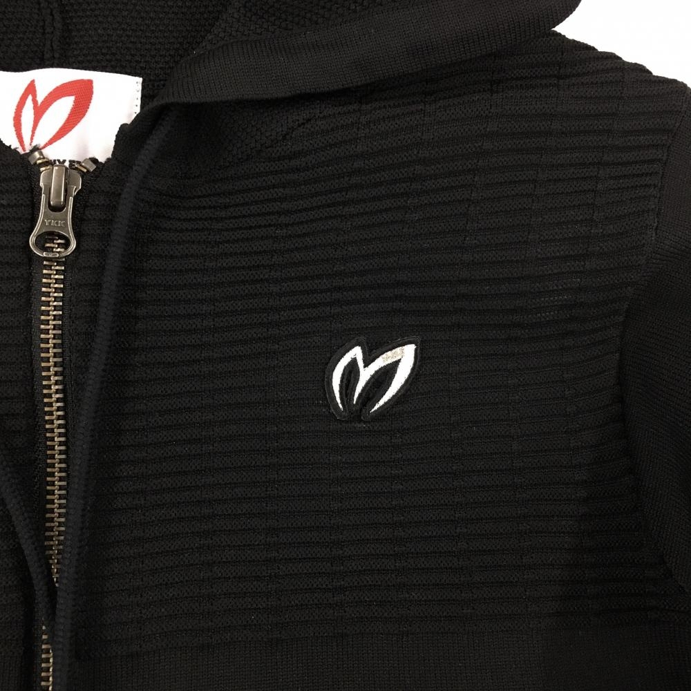【超美品】マスターバニー ジップニットパーカー 黒×白 背面ロゴ 後裾プリーツ レディース 0(S) ゴルフウェア MASTER BUNNY EDITION