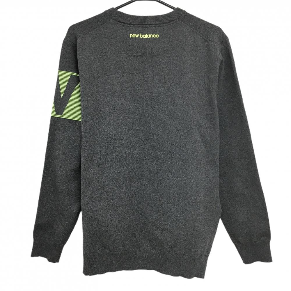 【超美品】ニューバランスゴルフ セーター グレー×イエロー 一部ボーダー ロゴ刺しゅう ニット メンズ 6(XL) ゴルフウェア New Balance