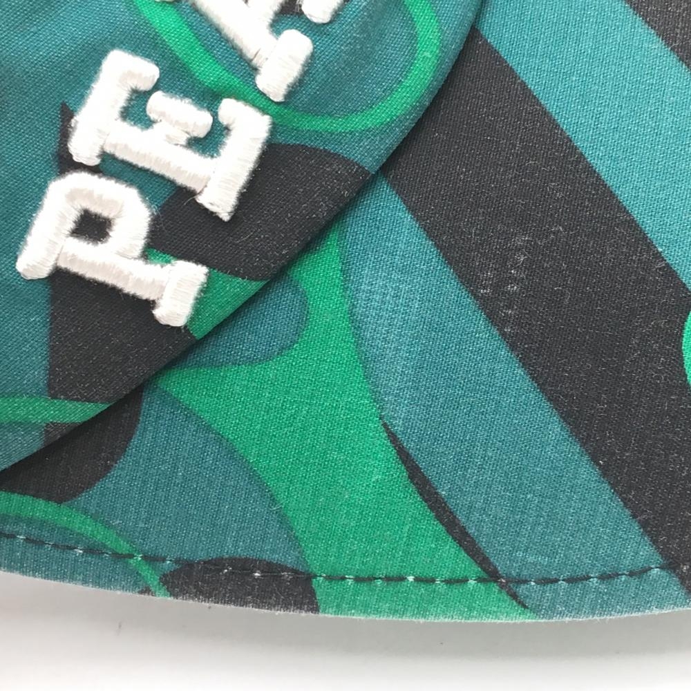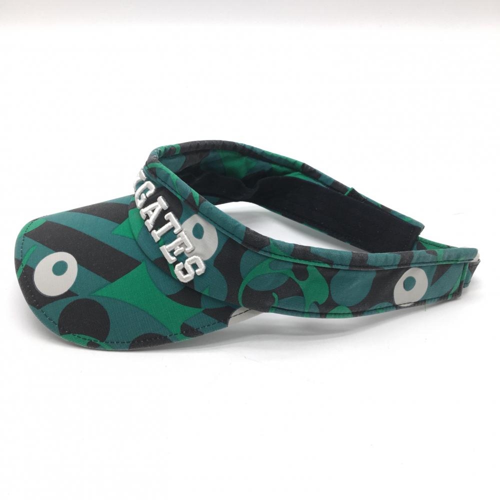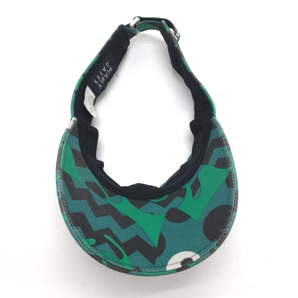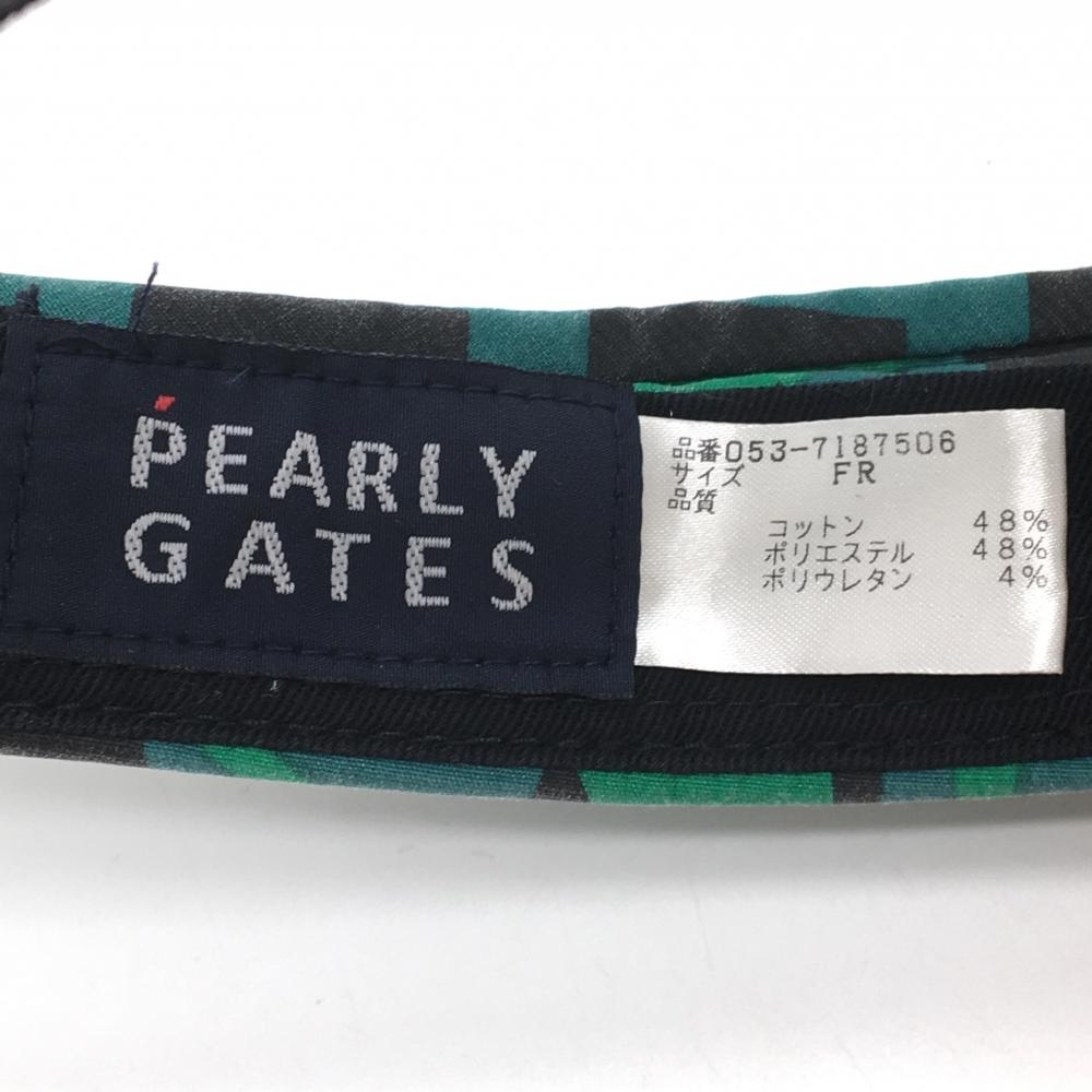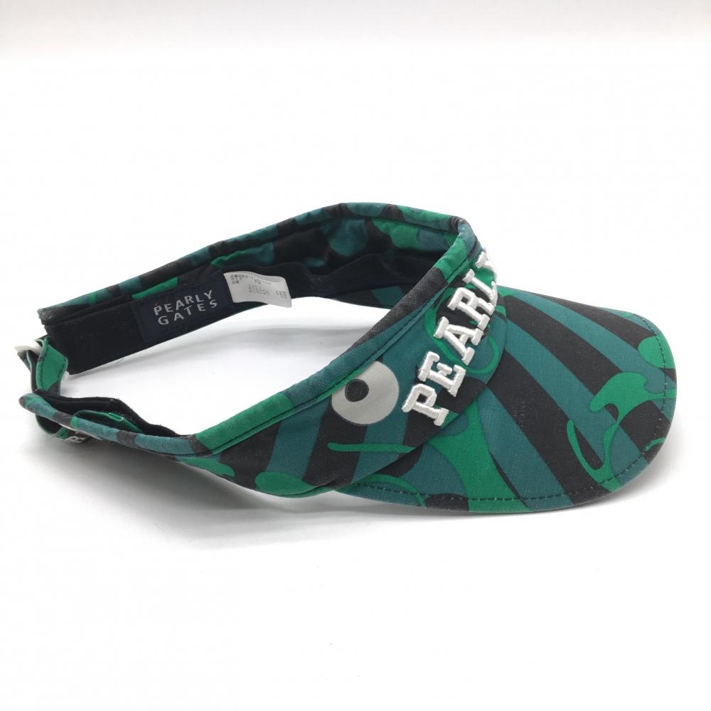 パーリーゲイツ サンバイザー グリーン×黒 総柄 ロゴ刺しゅう FR ゴルフウェア PEARLY GATES