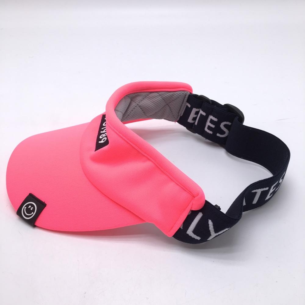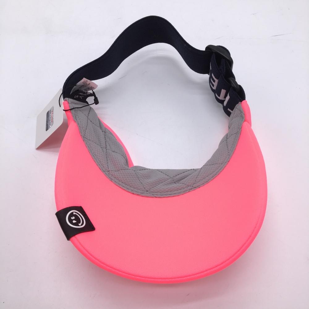 【新品】パーリーゲイツ サンバイザー 蛍光ピンク×ネイビー ニコちゃん スマイル 後ろゴム FR ゴルフウェア PEARLY GATES