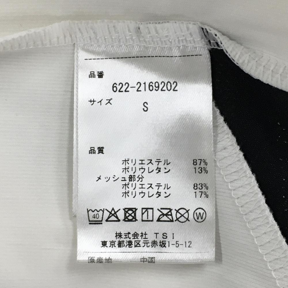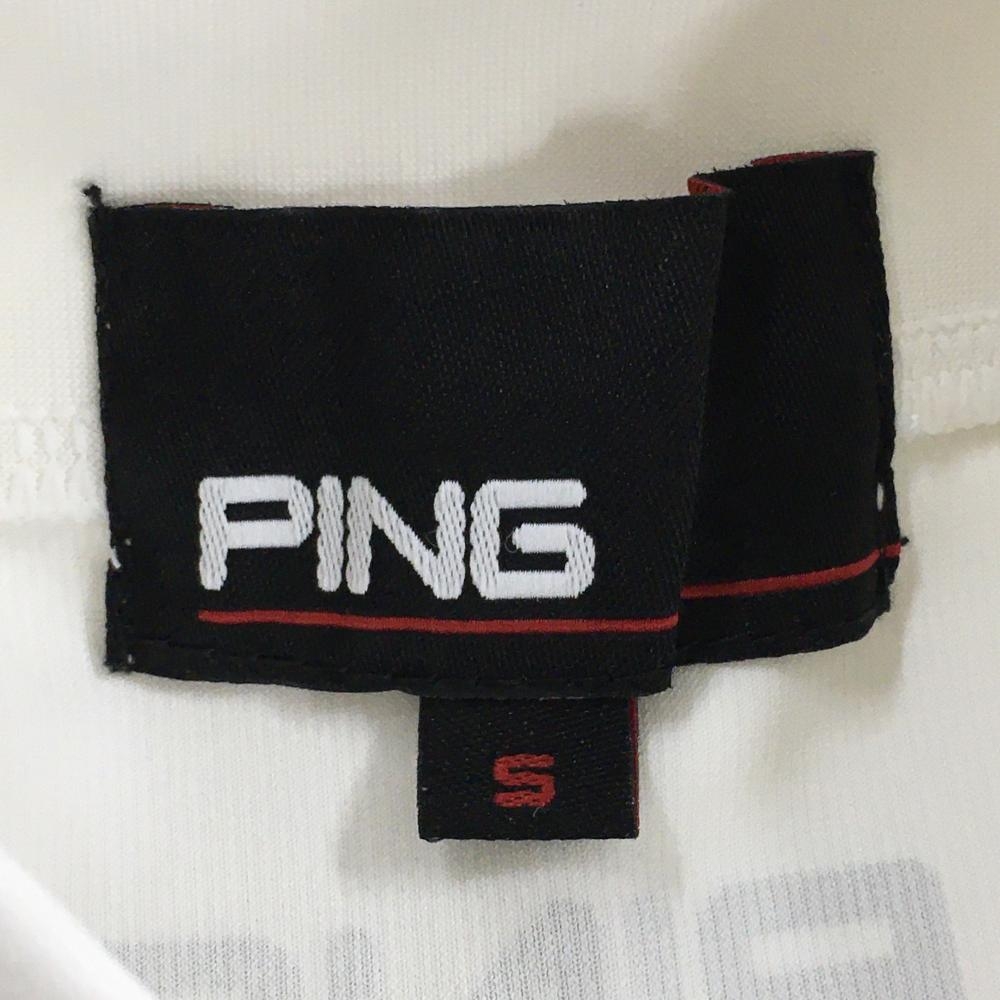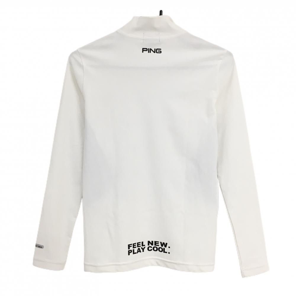 【超美品】ピン 長袖ハイネックシャツ 白×黒 胸元ロゴ サイド一部メッシュ レディース S ゴルフウェア PING