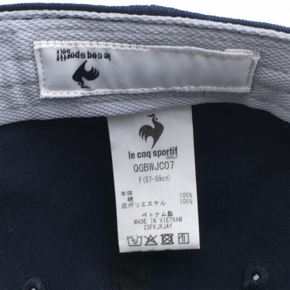 【美品】ルコックゴルフ フラットキャップ ネイビー×白 つば裏英字総柄 F(57-59cm) ゴルフウェア 2023年モデル le coq sportif
