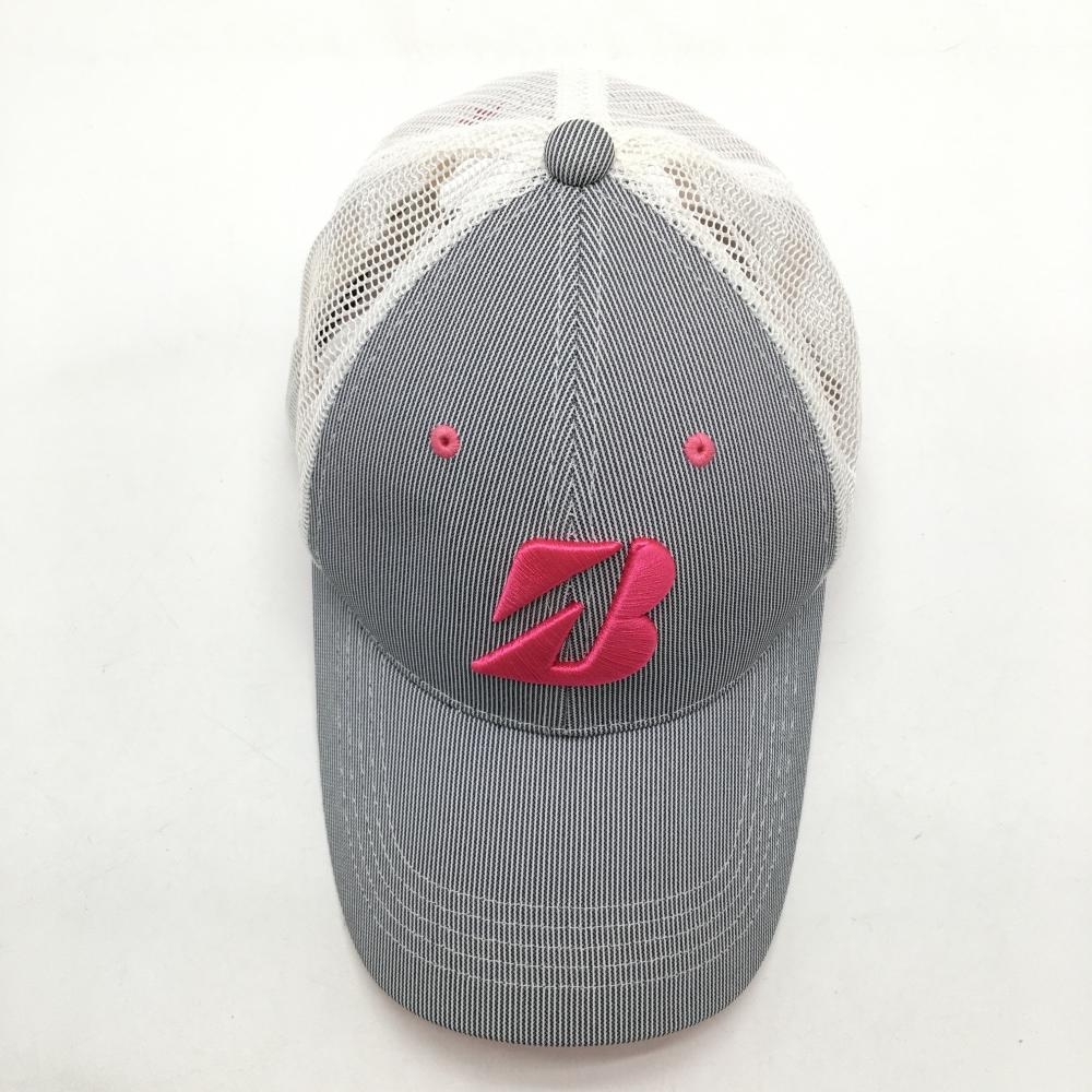 【美品】ブリヂストンTOURB メッシュキャップ ネイビー×白 前ストライプ フリーサイズ(約55~58cm) ゴルフウェア Bridgestone