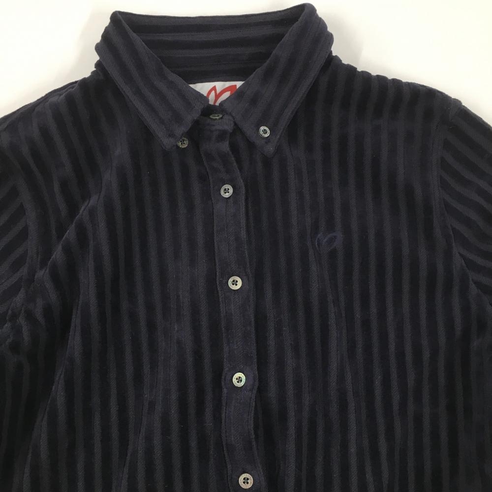 【超美品】マスターバニー 長袖シャツ ダークネイビー ベロアストライプ レディース 1(M) ゴルフウェア MASTER BUNNY EDITION