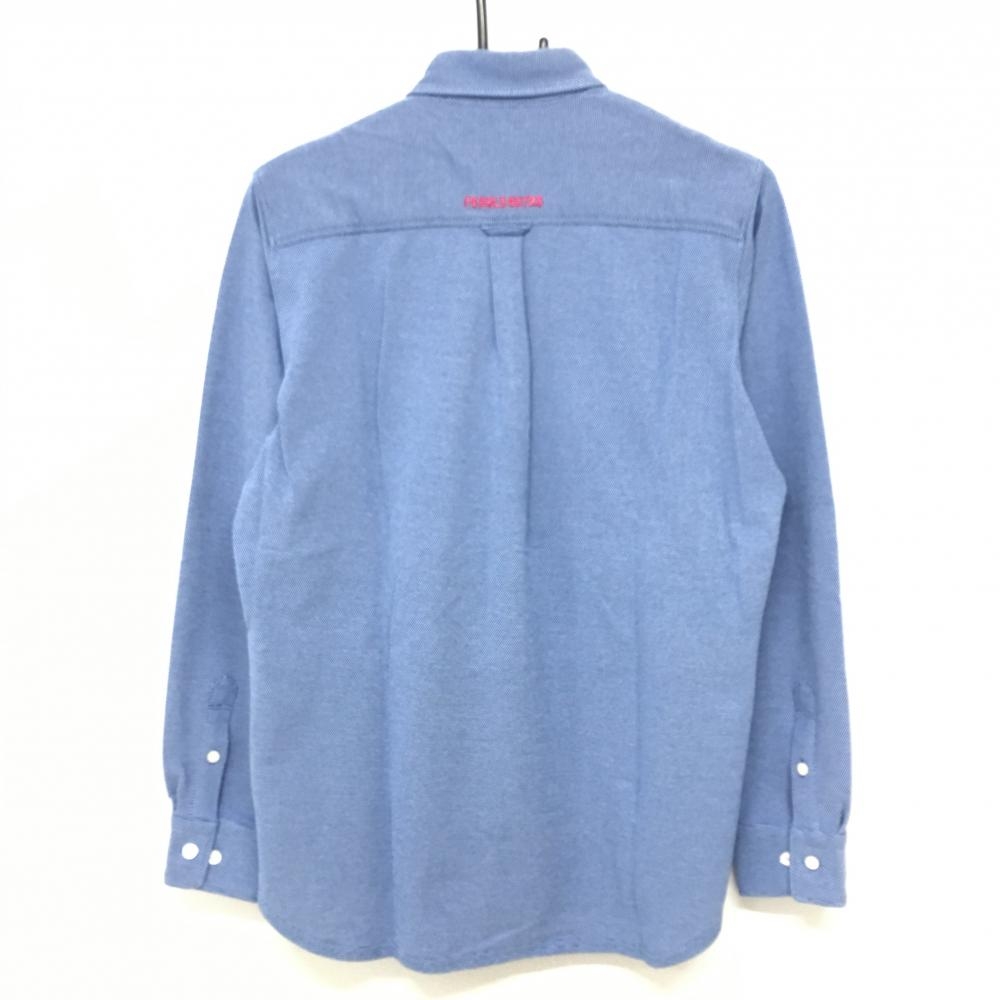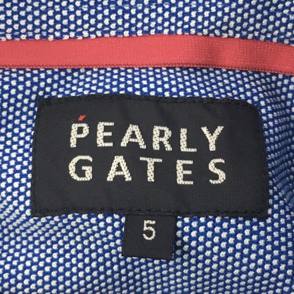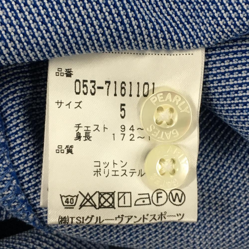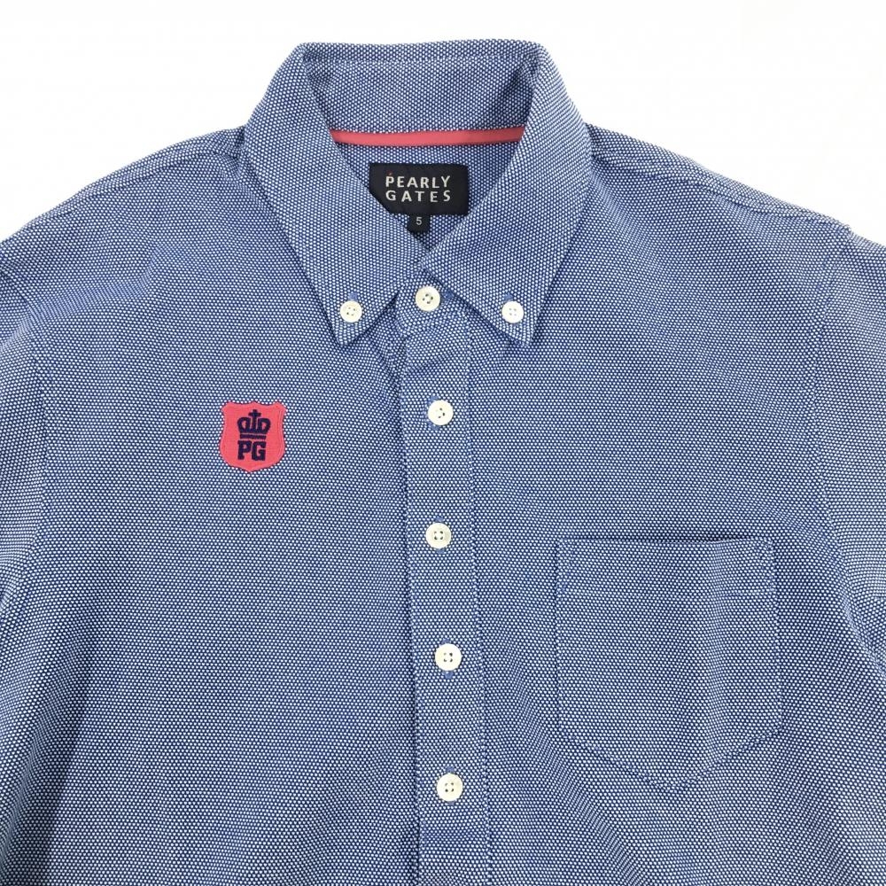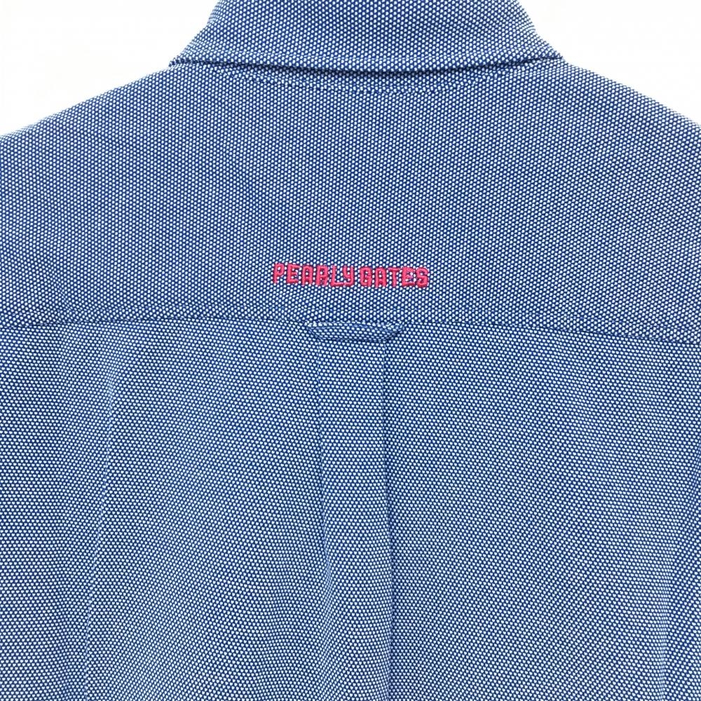 【超美品】パーリーゲイツ 長袖ポロシャツ ブルー×白 織生地 ボタンダウン 胸ポケット メンズ 5(L) ゴルフウェア PEARLY GATES