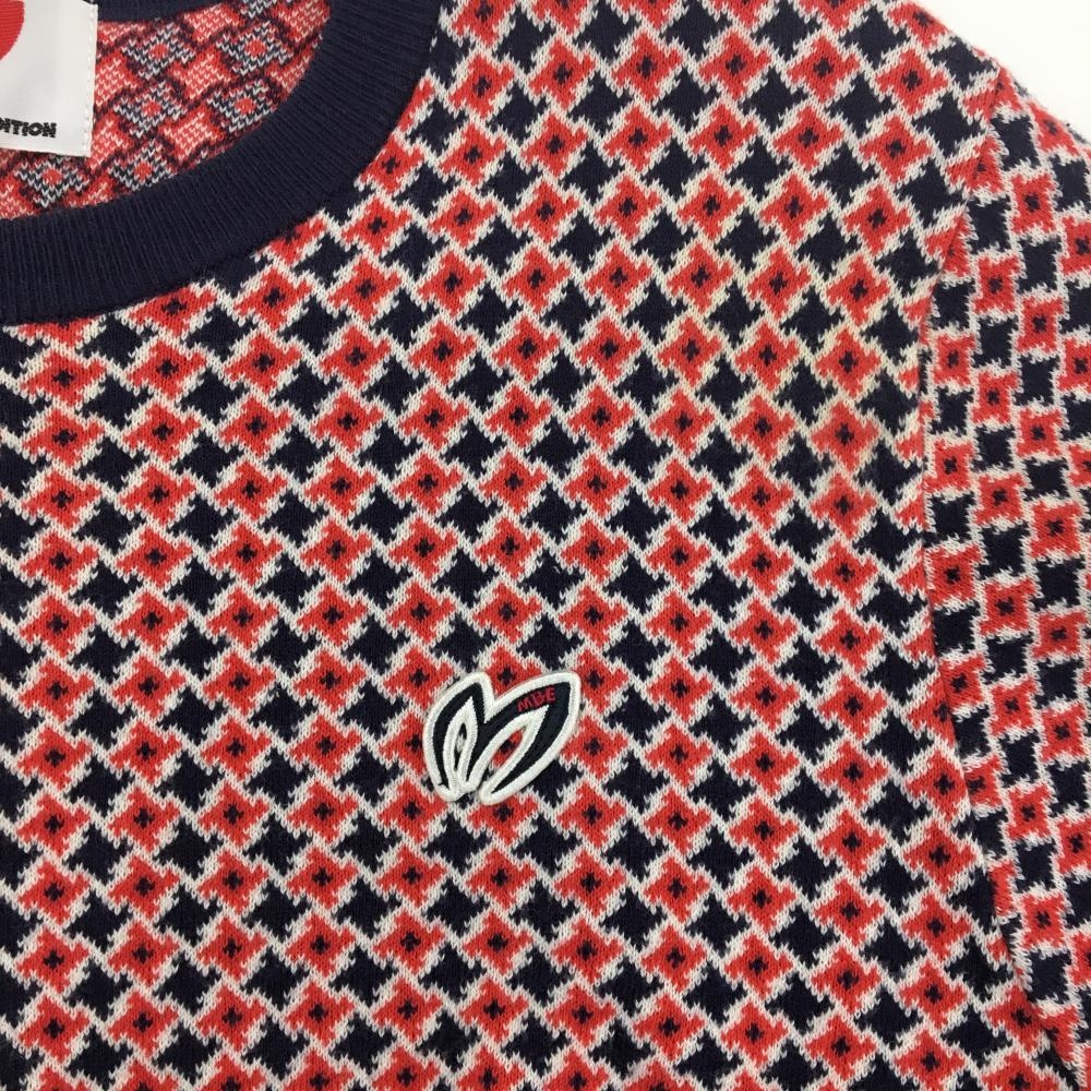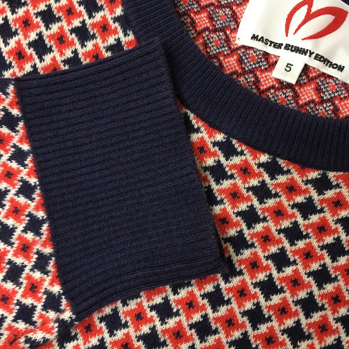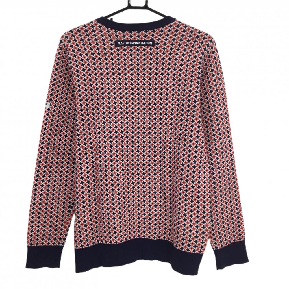 【美品】マスターバニー セーター ネイビー×レッド 総柄 ニット メンズ 5(L) ゴルフウェア MASTER BUNNY EDITION