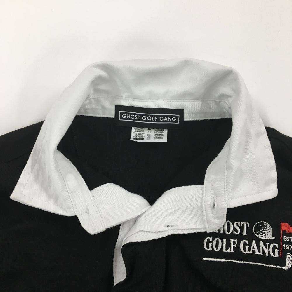 【美品】ゴーストゴルフギャング 長袖ポロシャツ 黒×白 コットン100% メンズ ゴルフウェア GHOST GOLF GANG