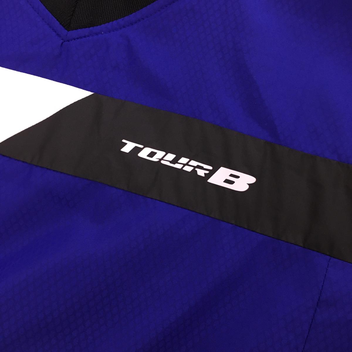 【超美品】ブリヂストンゴルフ 2WAYスニード ブルーパープル系×黒 地模様 蓄熱裏地 TOURB ブルゾン メンズ LL ゴルフウェア Bridgestone
