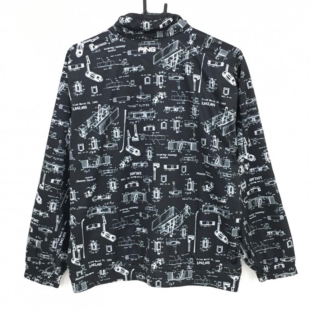 【超美品】ピン ジャケット 黒×白 総柄 メッシュ裏地 レディース L ゴルフウェア PING