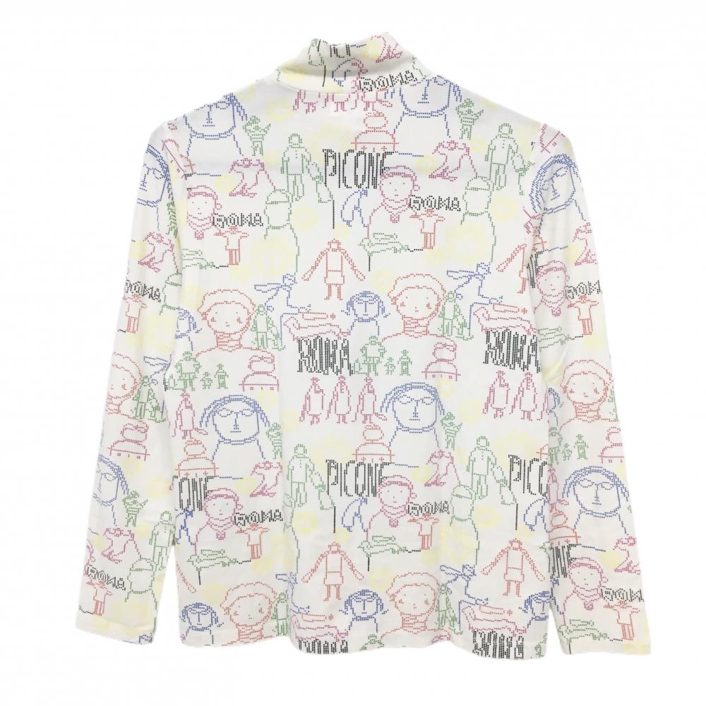 【超美品】ピッコーネクラブ 長袖ハイネックシャツ 白×マルチカラー 総柄 表微起毛 レディース I(M) ゴルフウェア PICONE