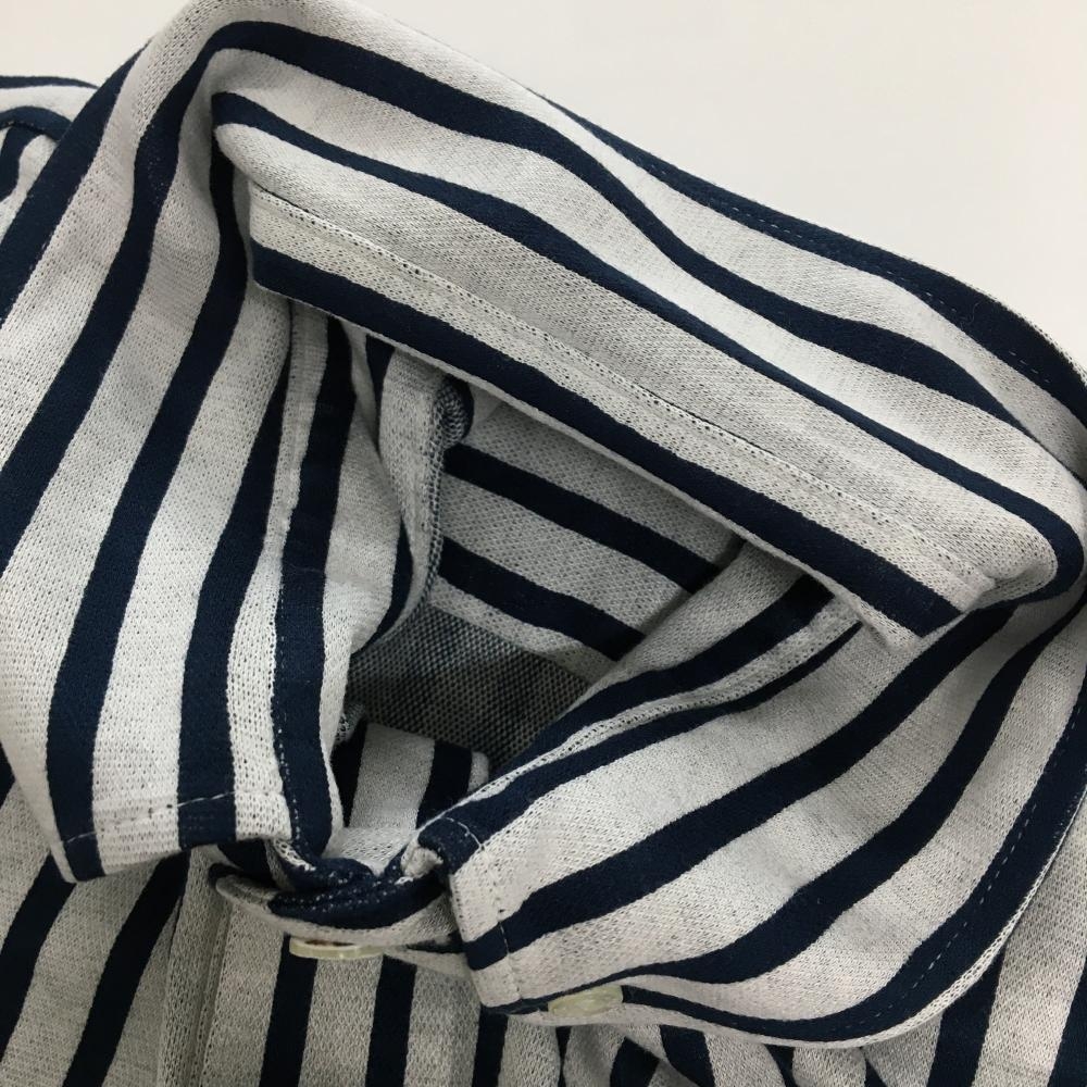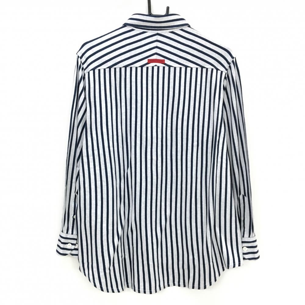 パーリーゲイツ 長袖ポロシャツ 白×ネイビー ストライプ ボタンダウン メンズ 6(XL) ゴルフウェア PEARLY GATES