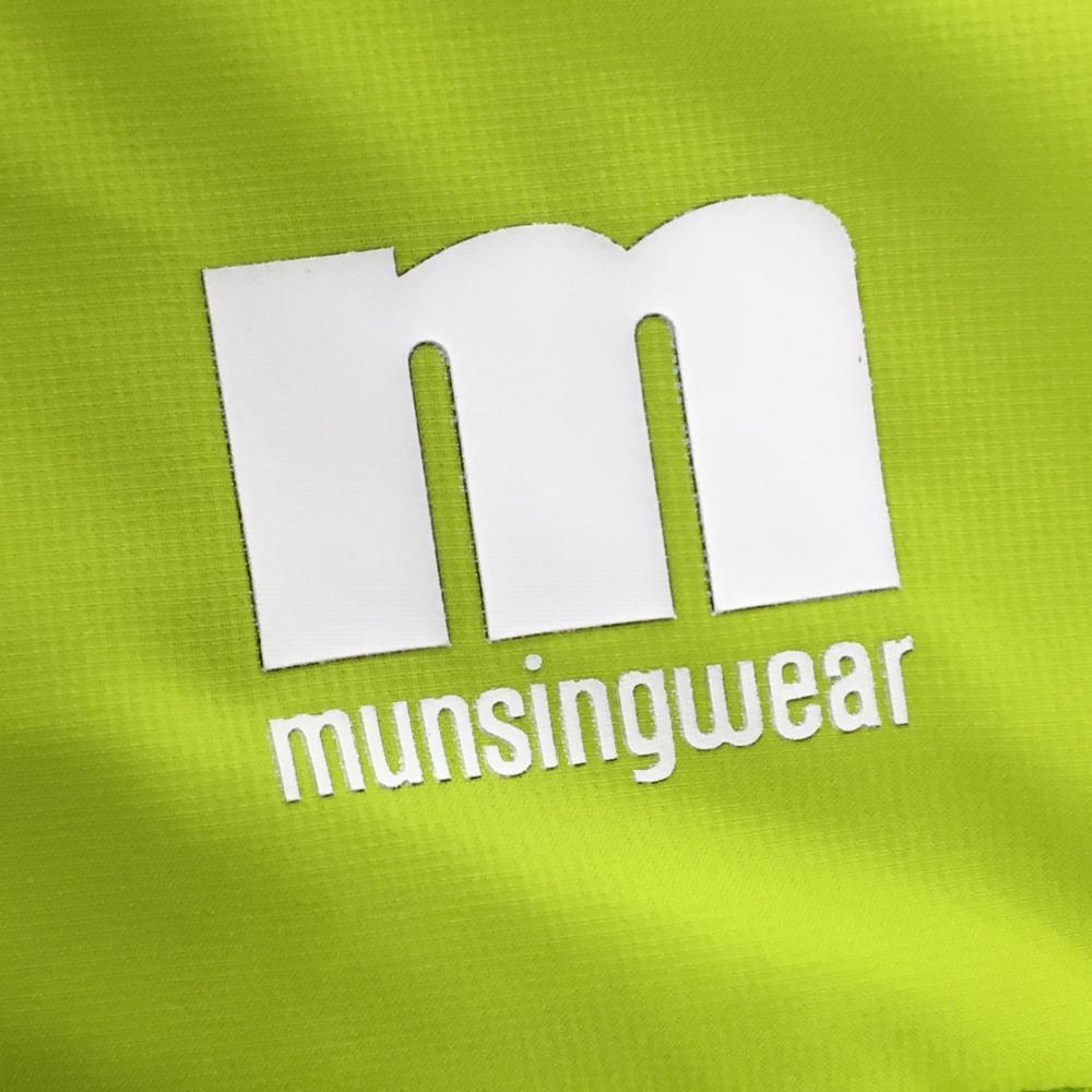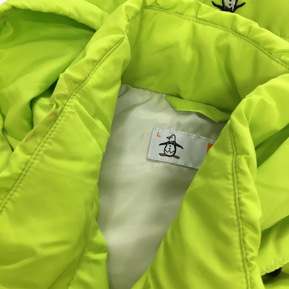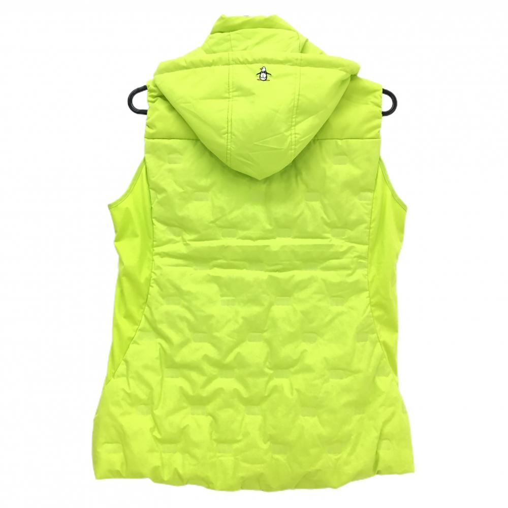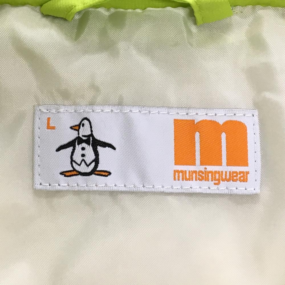 マンシングウェア 2WAYダウンベスト ライトグリーン ロゴ総柄地模様 フード着脱可 レディース L ゴルフウェア Munsingwear