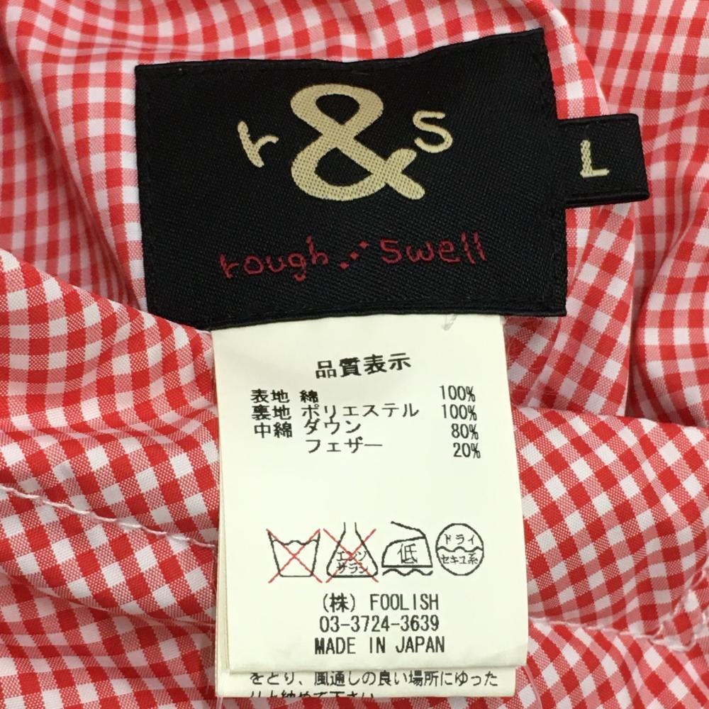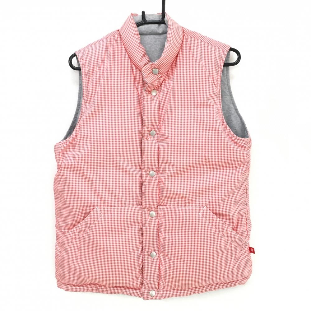 【美品】ラフアンドスウェル リバーシブルダウンベスト 杢グレー 裏ギンガムチェック メンズ L ゴルフウェア rough&swell