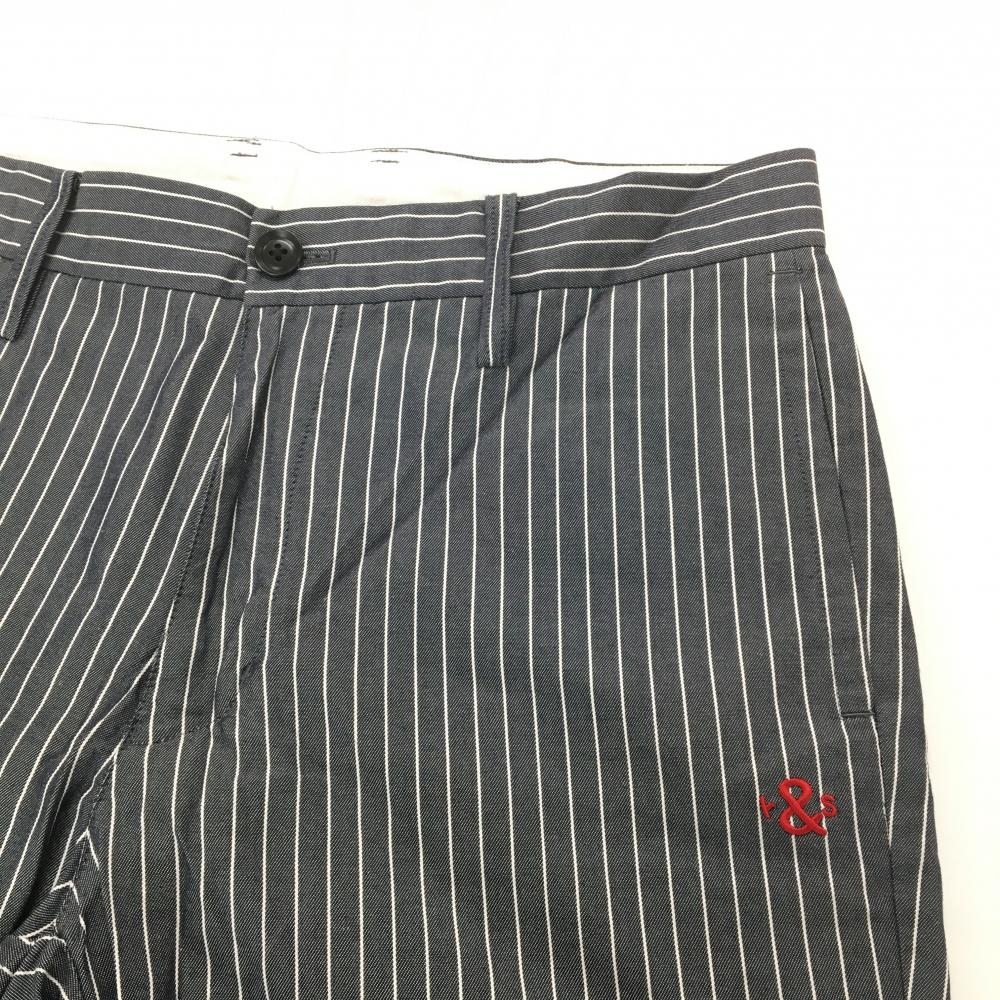 【美品】ラフアンドスウェル パンツ ネイビー系×白 ストライプ メンズ S ゴルフウェア rough&swell