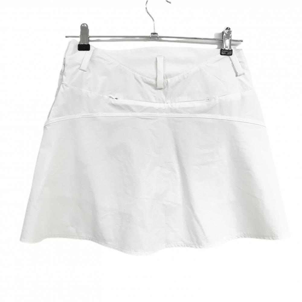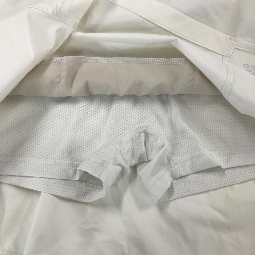 【美品】アディダス スカート 白 裾ロゴ ストレッチ 内側インナーパンツ レディース M ゴルフウェア adidas