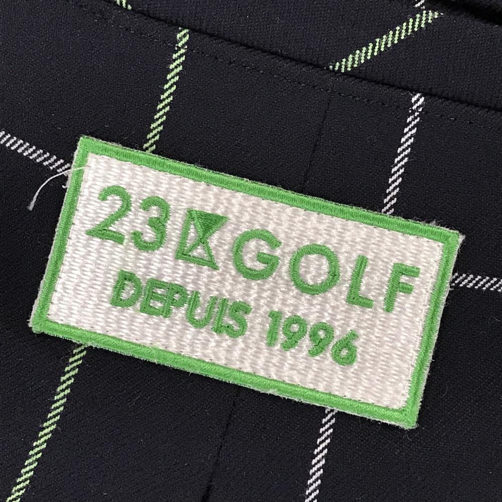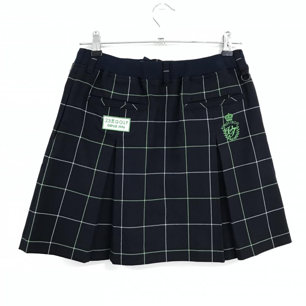 【超美品】23区ゴルフ スカート 黒×白 格子柄 ボックスプリーツ バックロゴ ウエストゴム 調節紐 レディース I(M) ゴルフウェア 23区