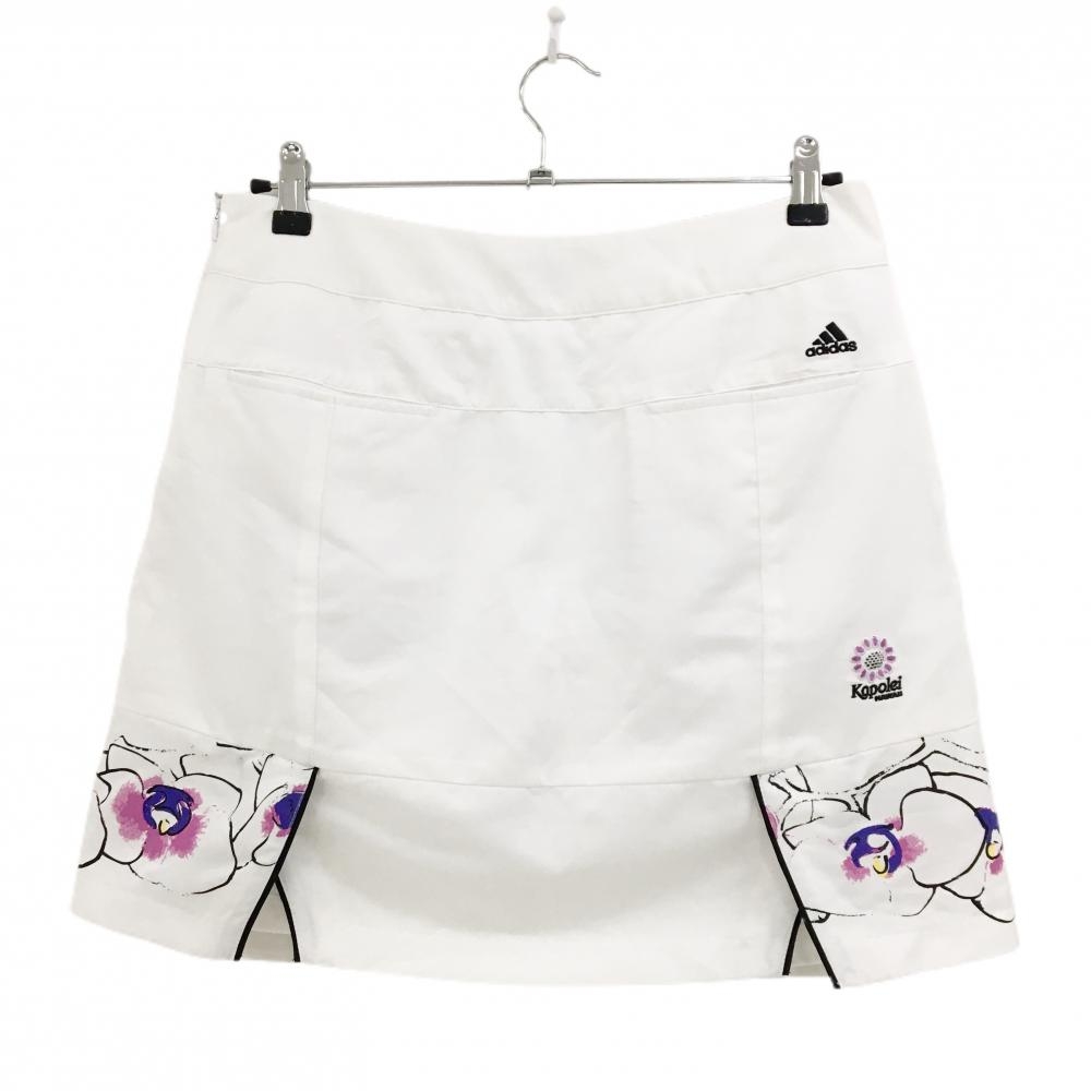 【美品】アディダス スカート 白×黒 裾一部花柄 内側インナーパンツ CLIMACOOL レディース 6 ゴルフウェア adidas
