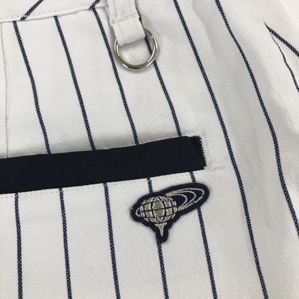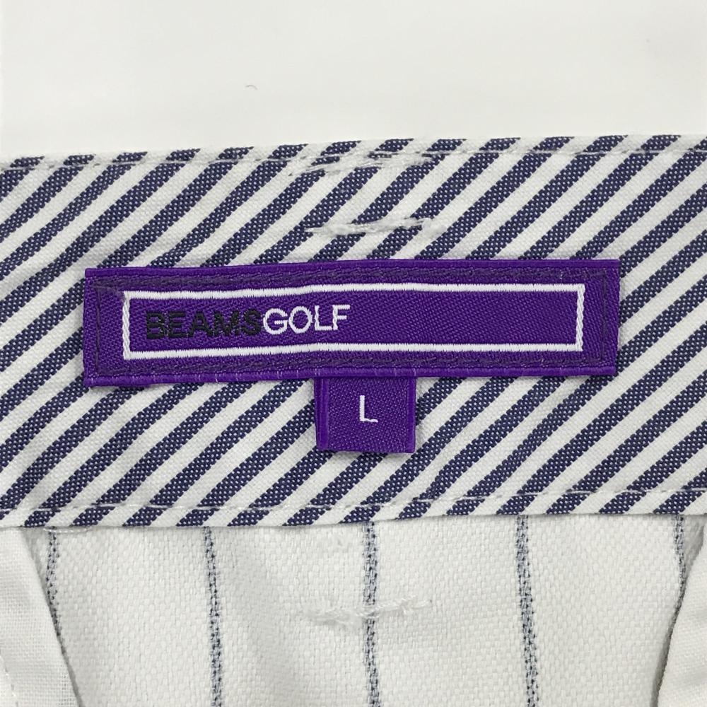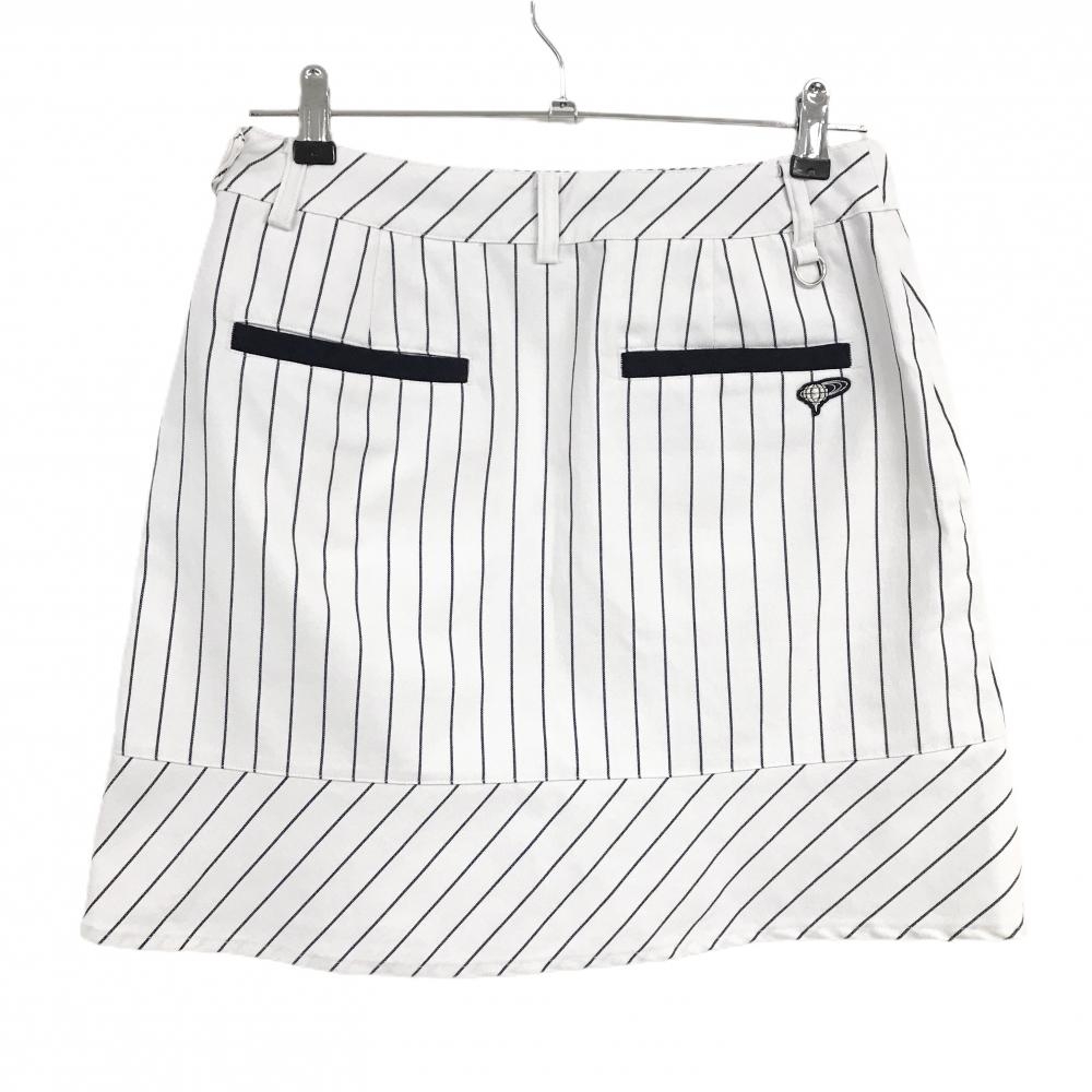 ビームスゴルフ スカート 白×ネイビー ストライプ レディース L ゴルフウェア BEAMS GOLF