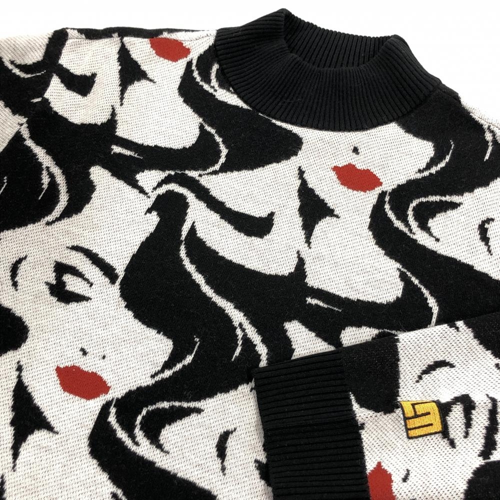 【超美品】ラウドマウス セーター 白×黒 女性柄 モナ ニット ウール混 メンズ L ゴルフウェア LOUDMOUTH