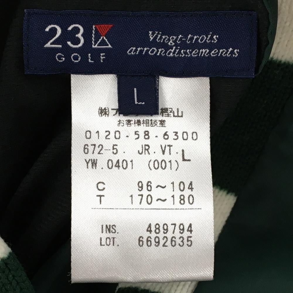 23区ゴルフ リバーシブル中綿ジャケット グリーン×白 4WAY 袖着脱可 一部ニット メンズ L ゴルフウェア 23区