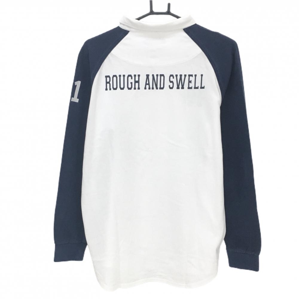 ラフアンドスウェル 長袖シャツ 白×ネイビー 袖切替 ボタンダウン メンズ XL ゴルフウェア rough&swell