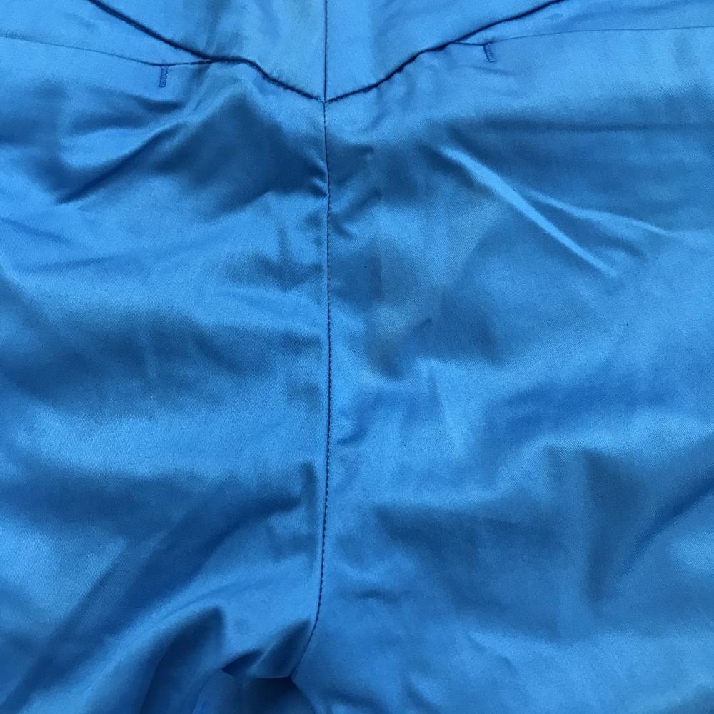デサントゴルフ パンツ ブルー 光沢感 ストレッチ 中田英寿 ヒップ・右膝汚れ レディース 61/S ゴルフウェア DESCENTE