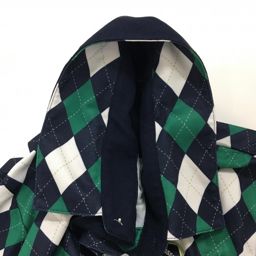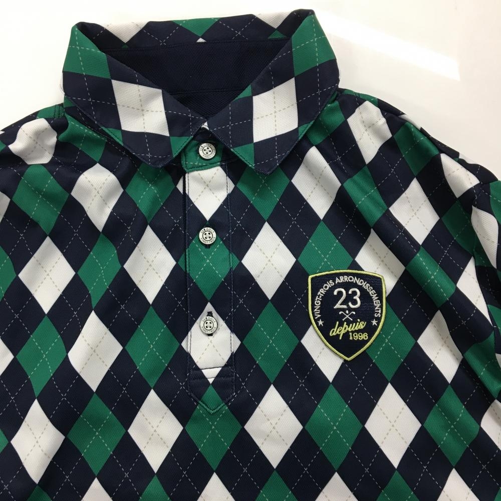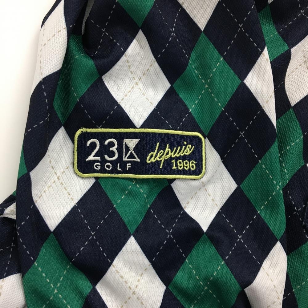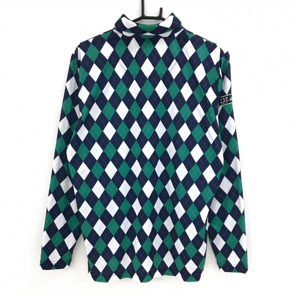 【美品】23区ゴルフ 長袖ポロシャツ ネイビー×グリーン×白 アーガイル メンズ L ゴルフウェア 23区