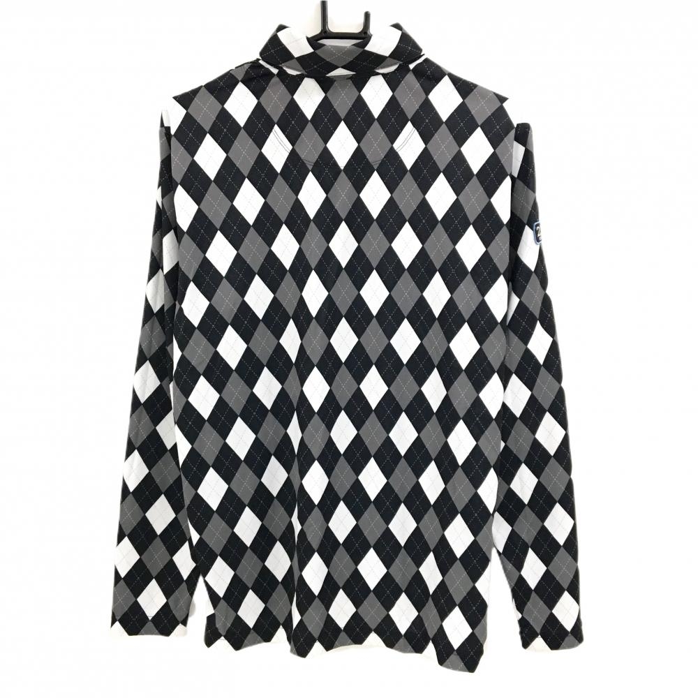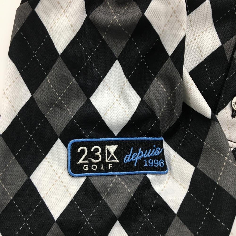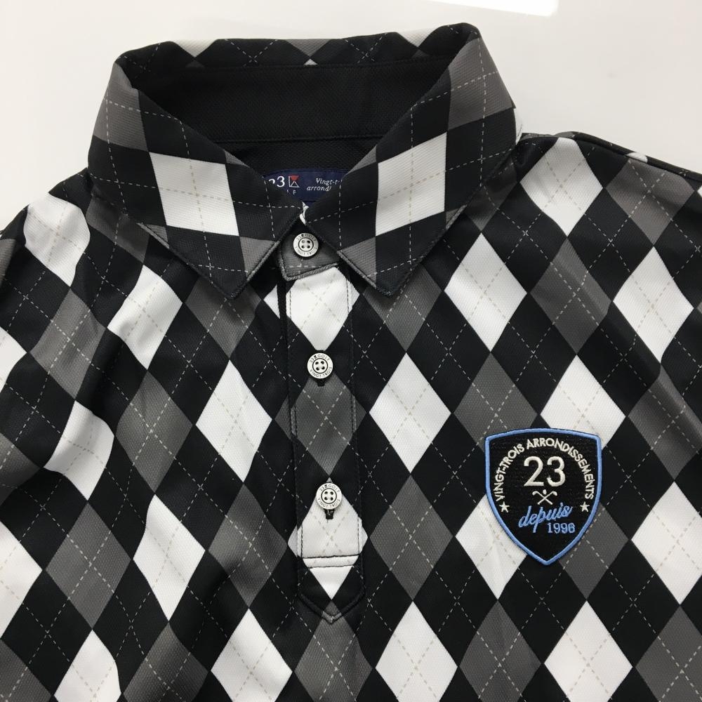 【超美品】23区ゴルフ 長袖ポロシャツ 黒×白×グレー アーガイル メンズ L ゴルフウェア 23区