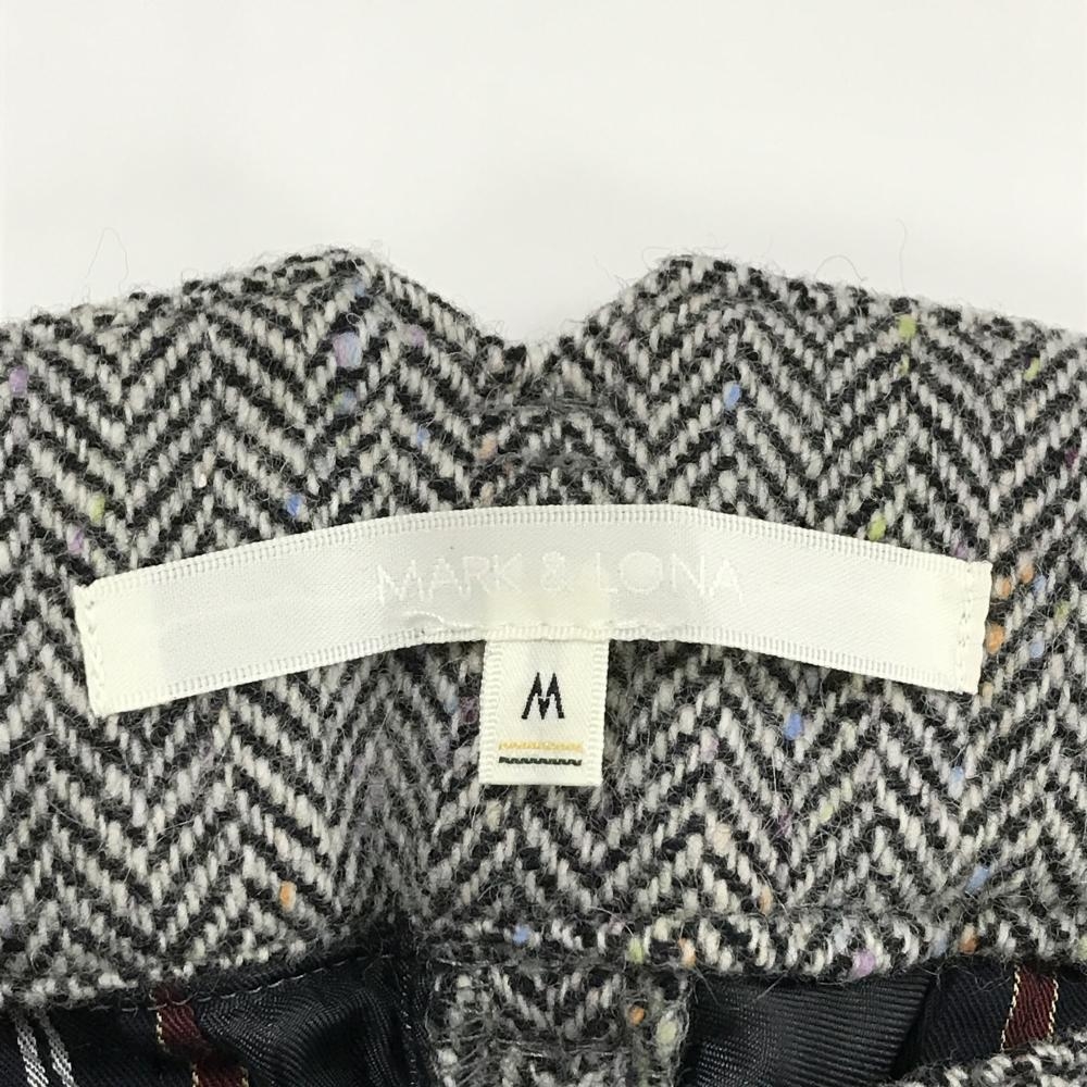 【新品】マークアンドロナ ハーフパンツ ダークブラウン×白 ヘリンボーン ウール混 レディース M ゴルフウェア MARK&LONA