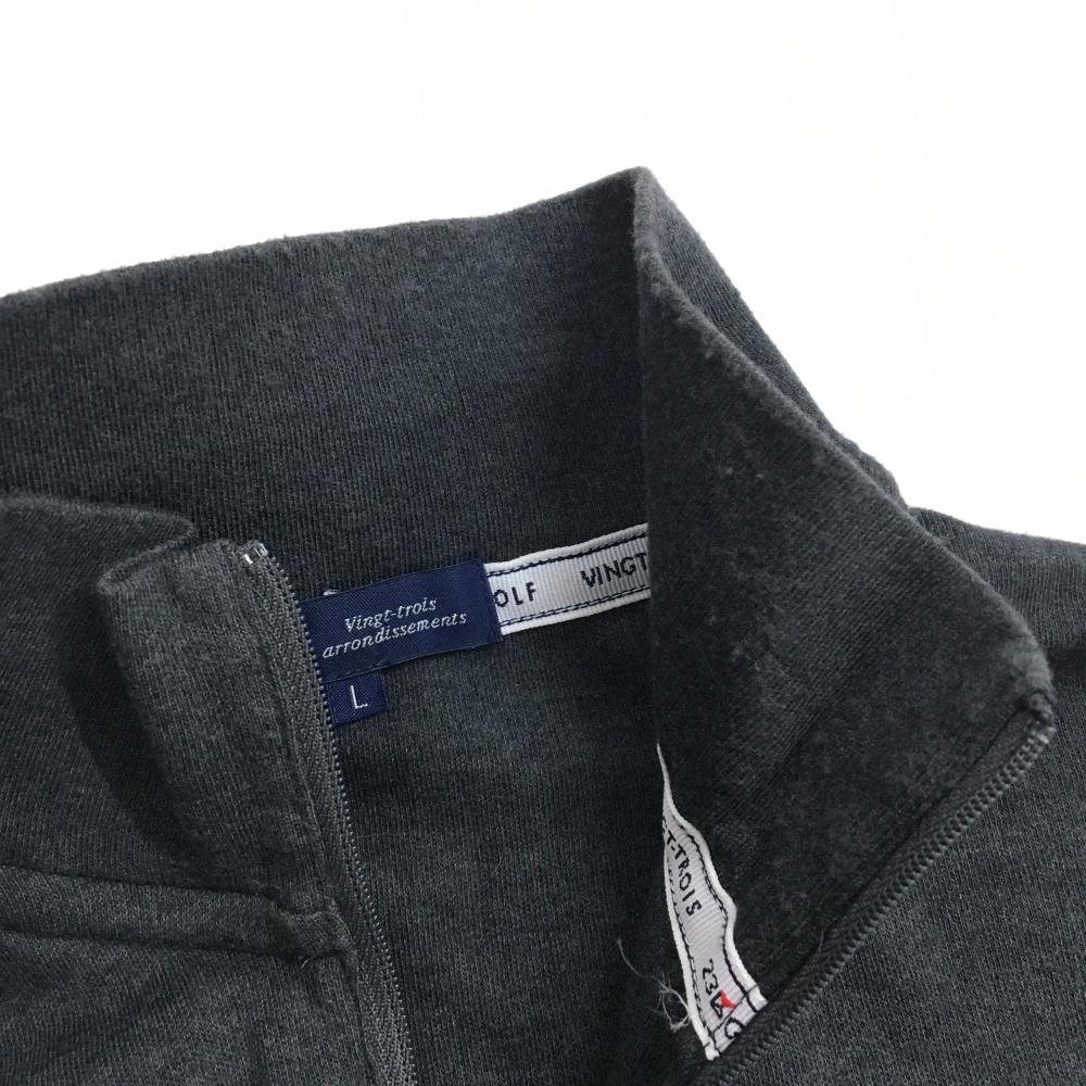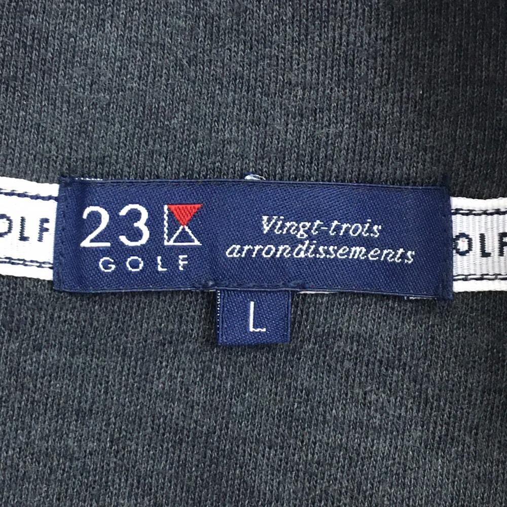 23区ゴルフ 長袖ハイネックシャツ グレー×白 ハーフジップ 袖ライン メンズ L ゴルフウェア 23区