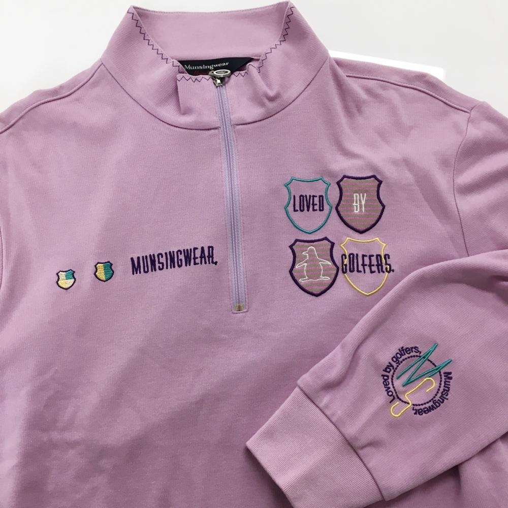 マンシングウェア 長袖ハイネックシャツ ピンク ハーフジップ 微起毛 ロゴ刺しゅう レディース L ゴルフウェア Munsingwear