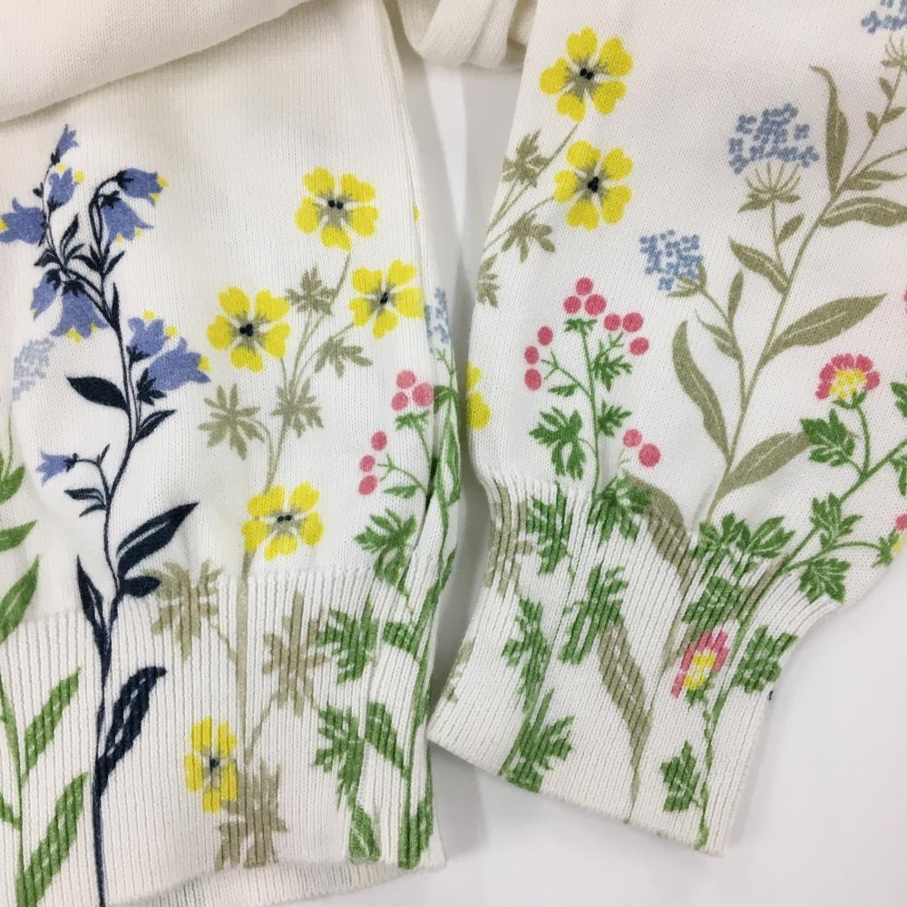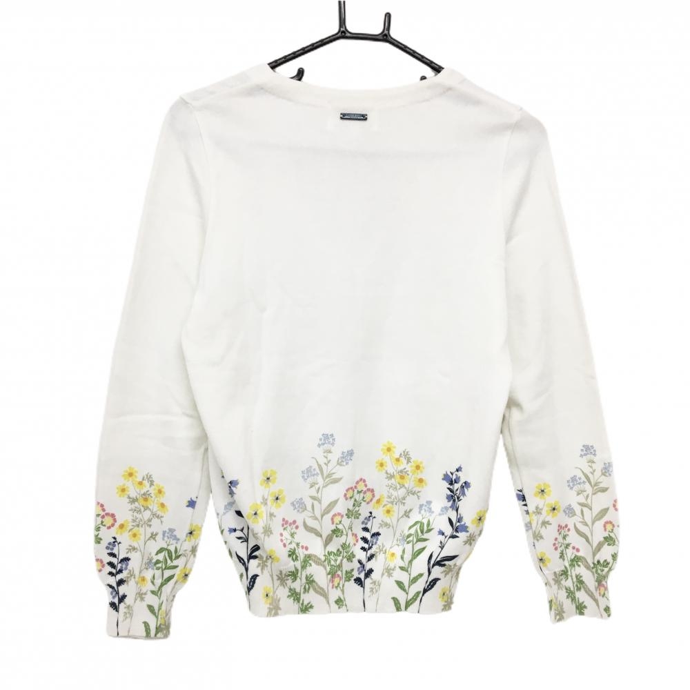 【超美品】マスターバニー カーディガン 白×マルチカラー 裾花柄 コットン100% レディース 0(S) ゴルフウェア MASTER BUNNY EDITION