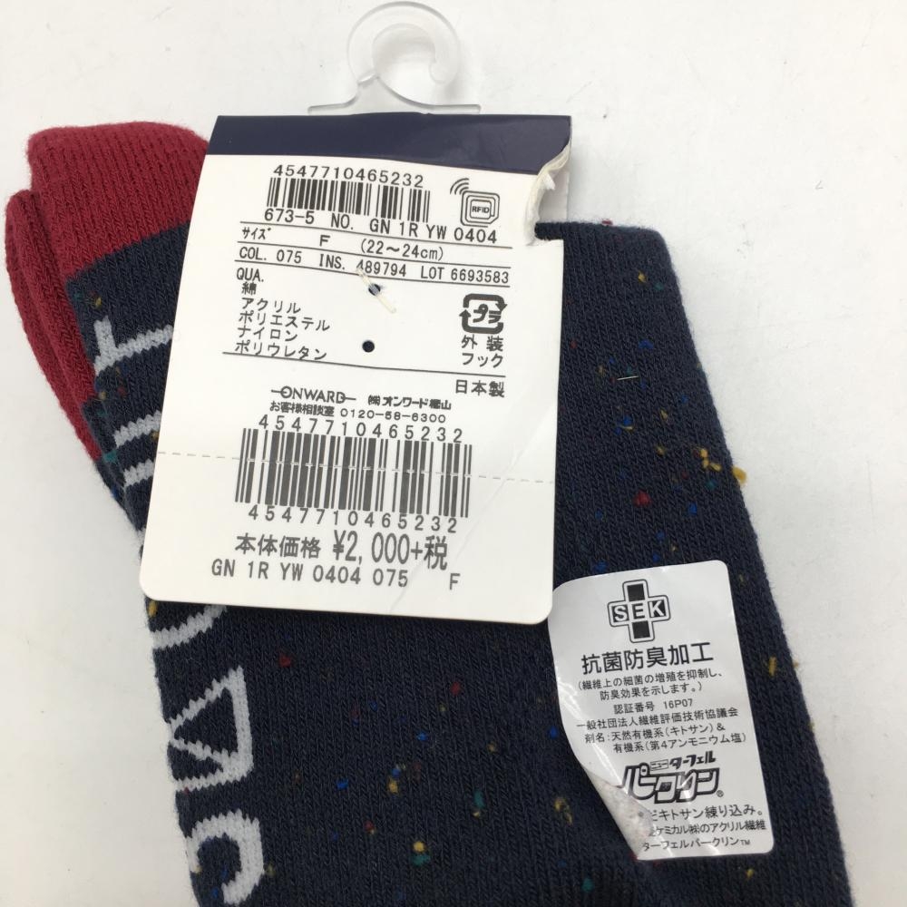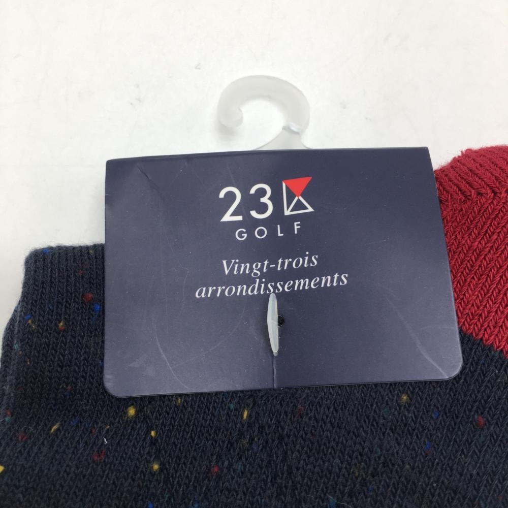 【新品】23区ゴルフ ハイソックス ネイビー×レッド ネップ調 レディース F(22-24cm) ゴルフウェア 23区