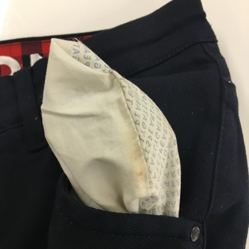 【美品】パーリーゲイツ パンツ ネイビー×白 バックロゴ ストレッチ ウエスト内側チェック メンズ 3(S) ゴルフウェア PEARLY GATES