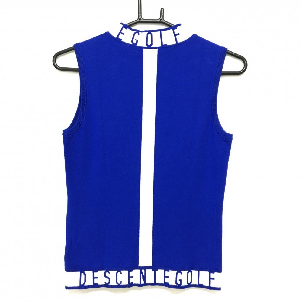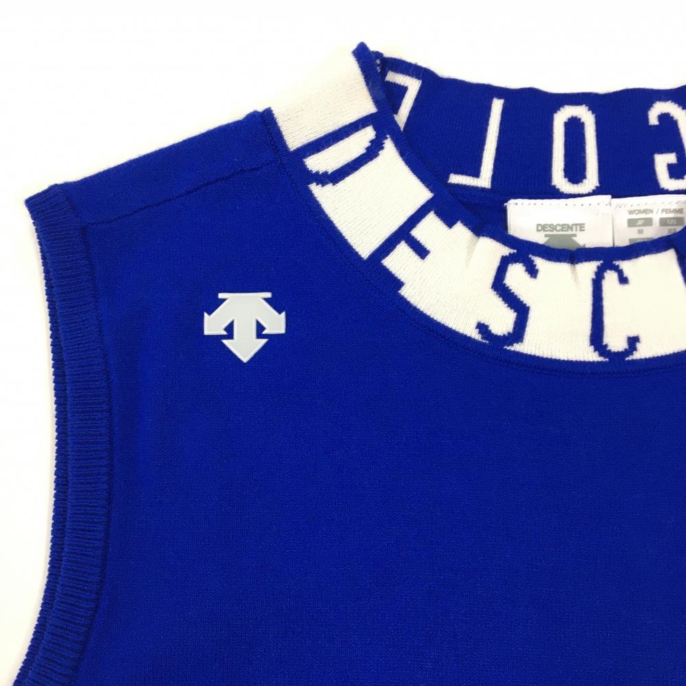 【超美品】デサントゴルフ ノースリーブニット ブルー×白 ネック・裾ロゴ 中田英寿 レディース M ゴルフウェア 2023年モデル DESCENTE