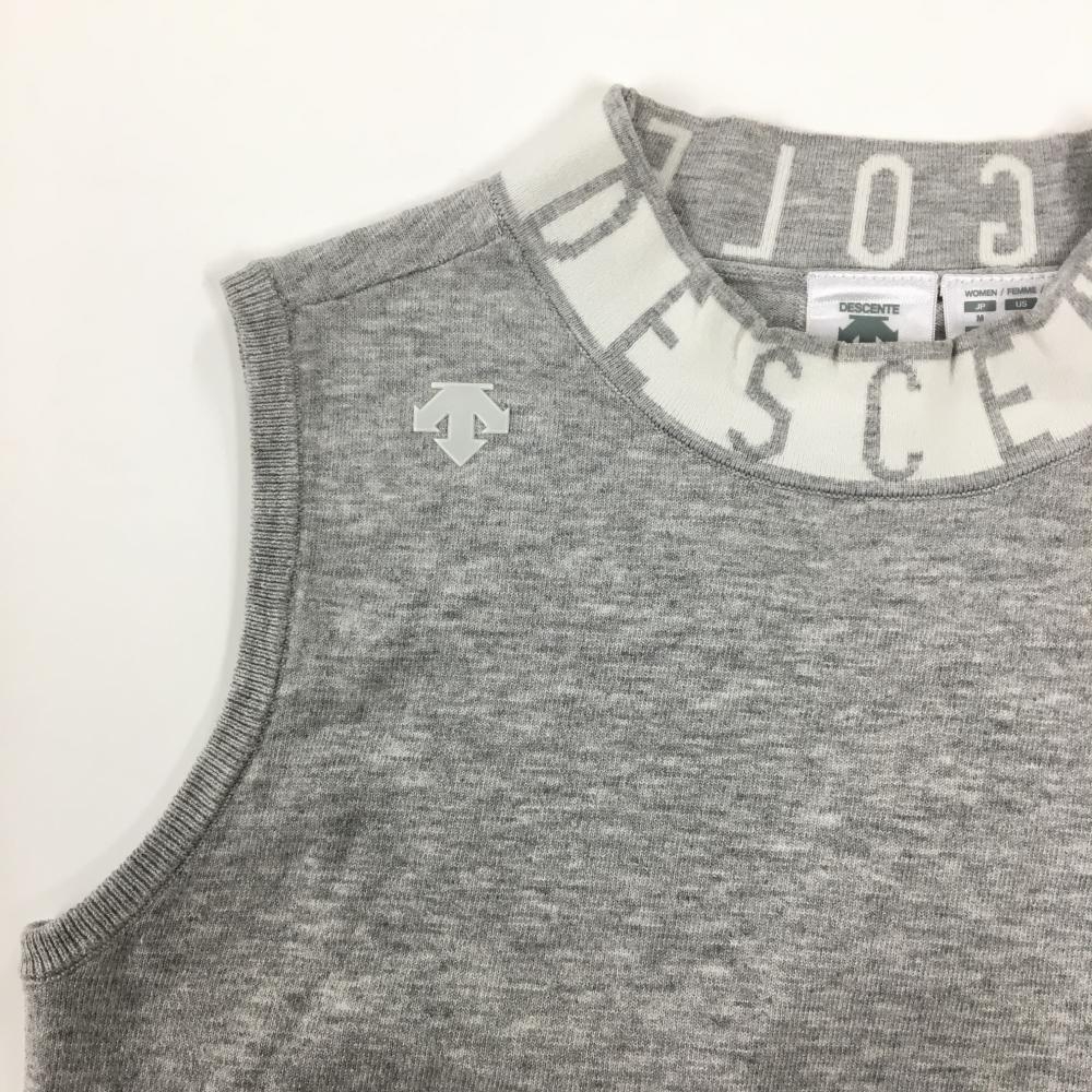 【超美品】デサントゴルフ ノースリーブニット 杢グレー×白 ネック・裾ロゴ 中田英寿 レディース M ゴルフウェア 2023年モデル DESCENTE