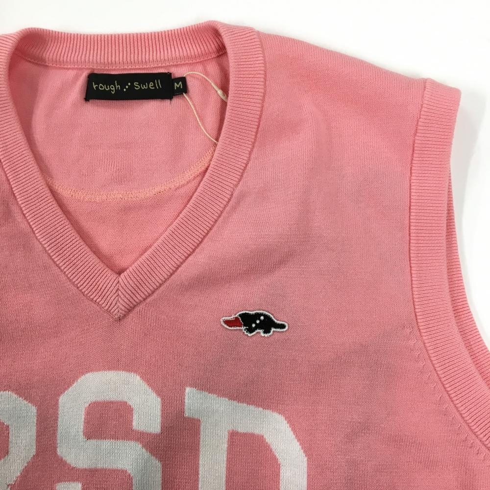 【新品】ラフアンドスウェル ニットベスト ピンク×白 フロント英字 コットン100% メンズ M ゴルフウェア 2023年モデル rough&swell