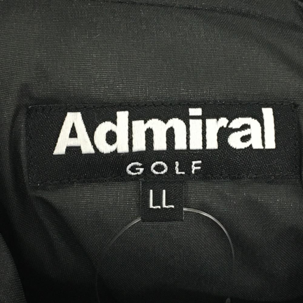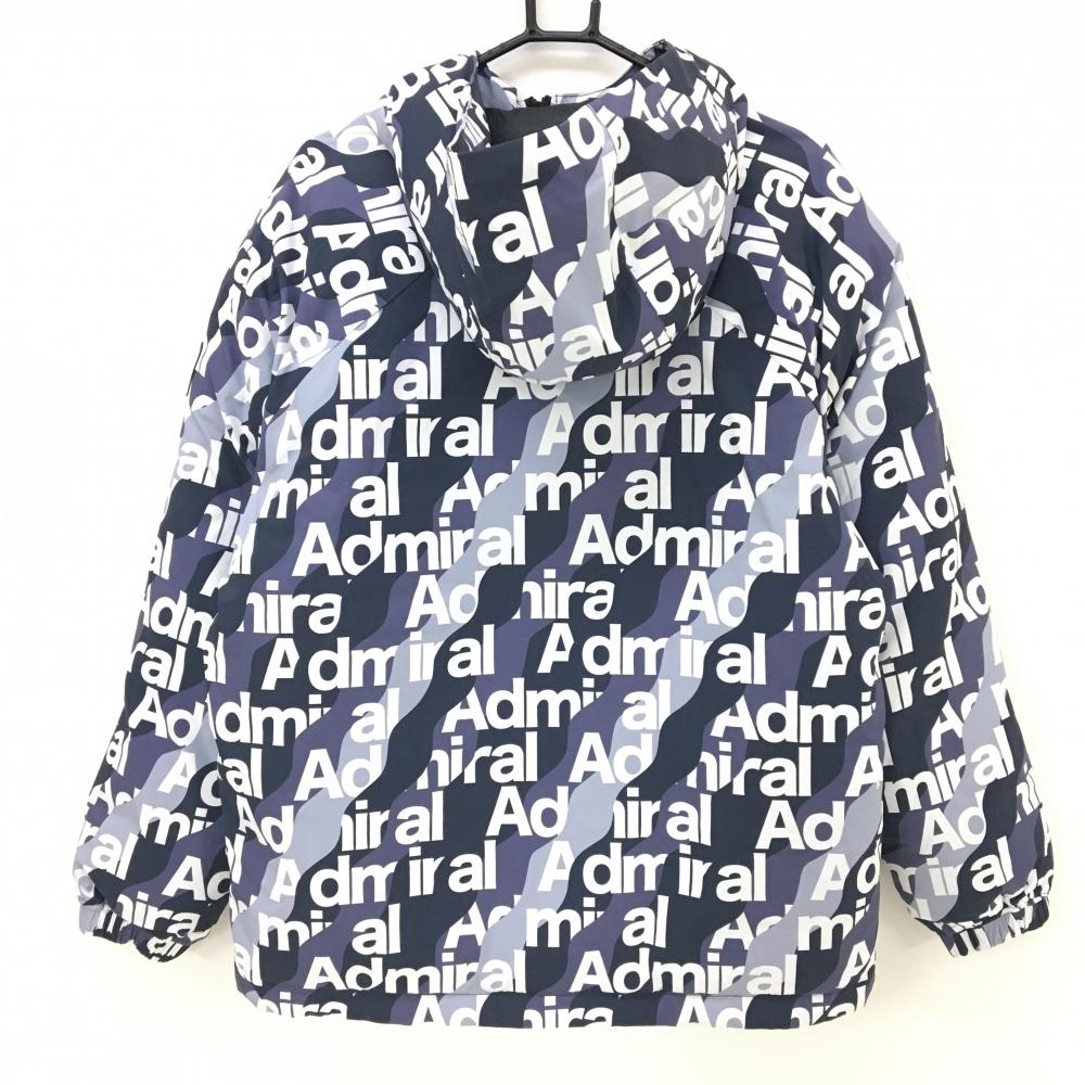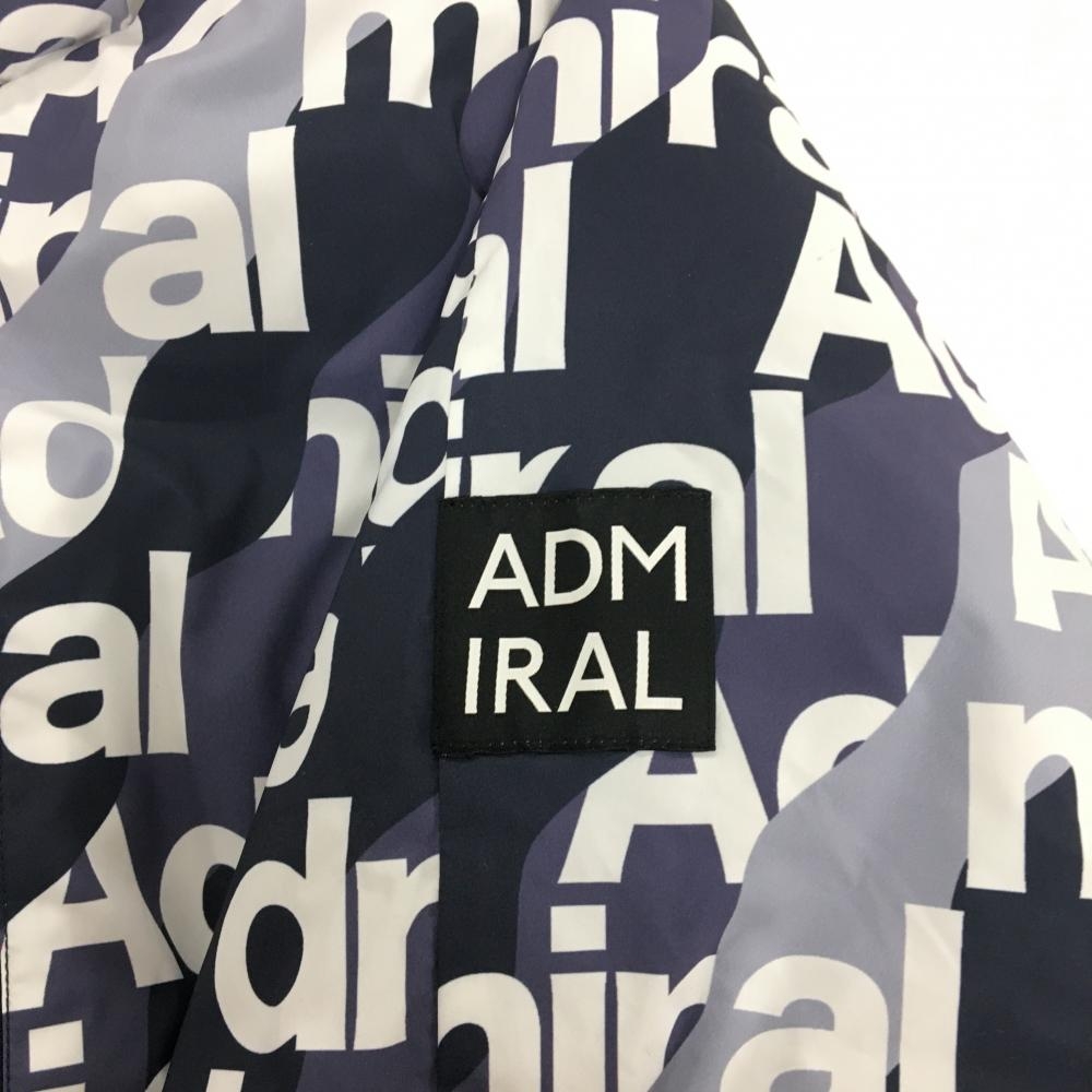 【美品】アドミラル フード付き中綿ジャケット ネイビー×白 英字ロゴ総柄 ファスナー横プリント メンズ LL ゴルフウェア Admiral