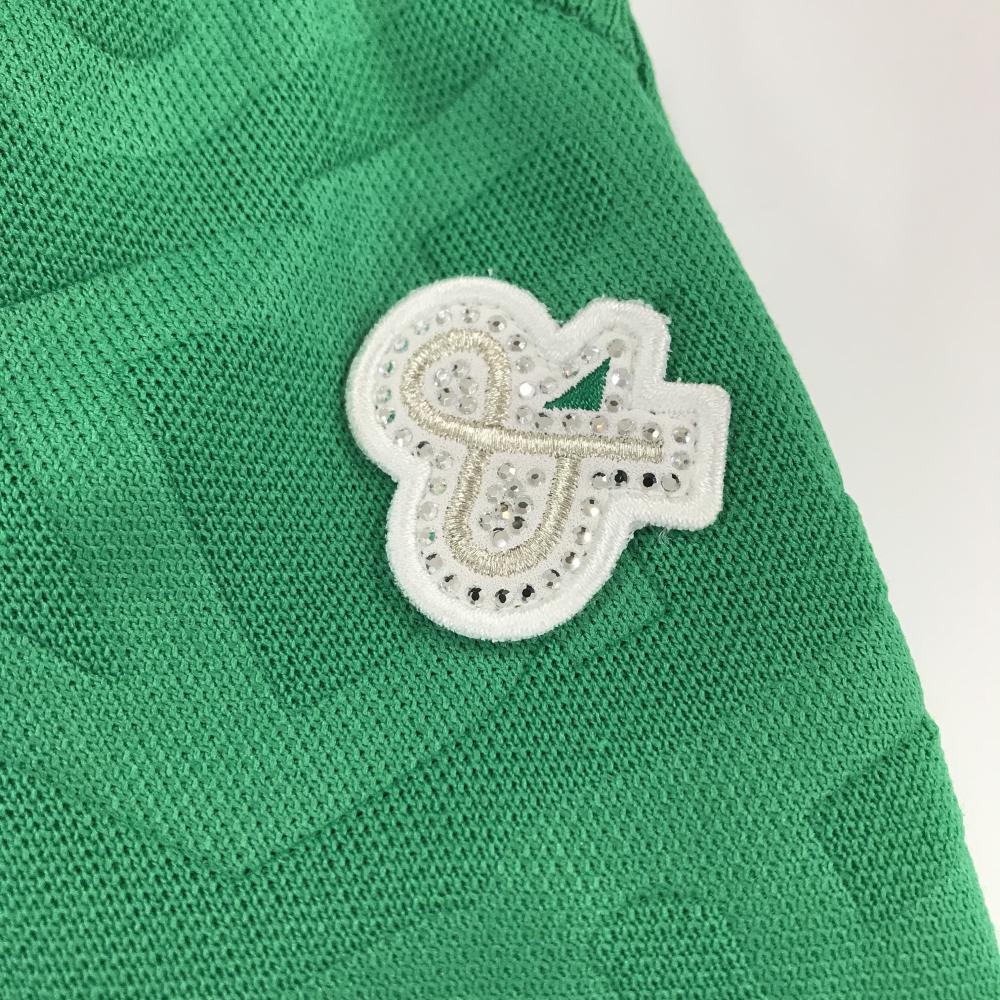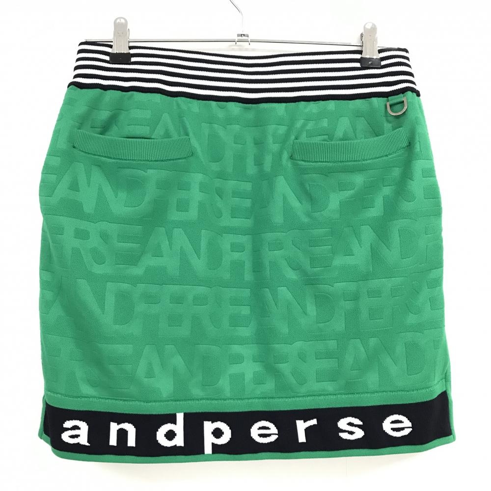 アンパスィ スカート グリーン×白×黒 英字総柄 ウエストボーダー&ゴム レディース L ゴルフウェア 2025年モデル and per se