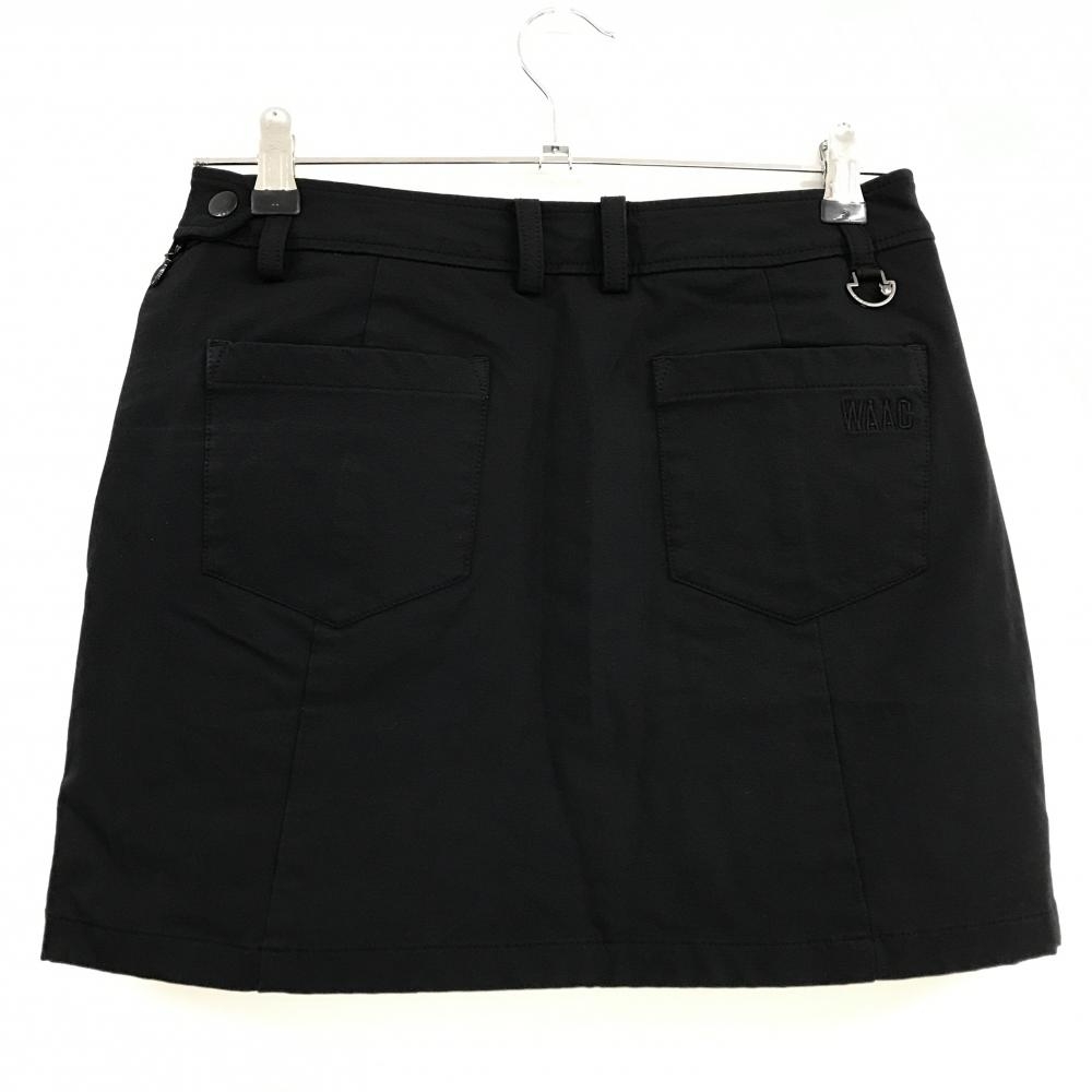 【美品】ワック スカート 黒 内側インナーパンツ ロゴ刺しゅう ストレッチ レディース 2(M) ゴルフウェア WAAC