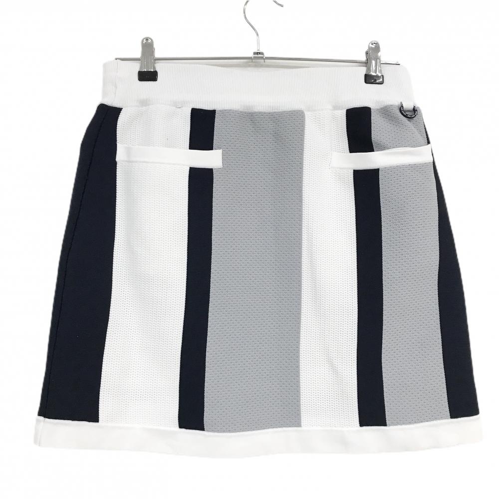 【美品】アンパスィ ニットスカート 白×グレー×ダークネイビー ストライプ レディース L ゴルフウェア 2025年モデル and per se