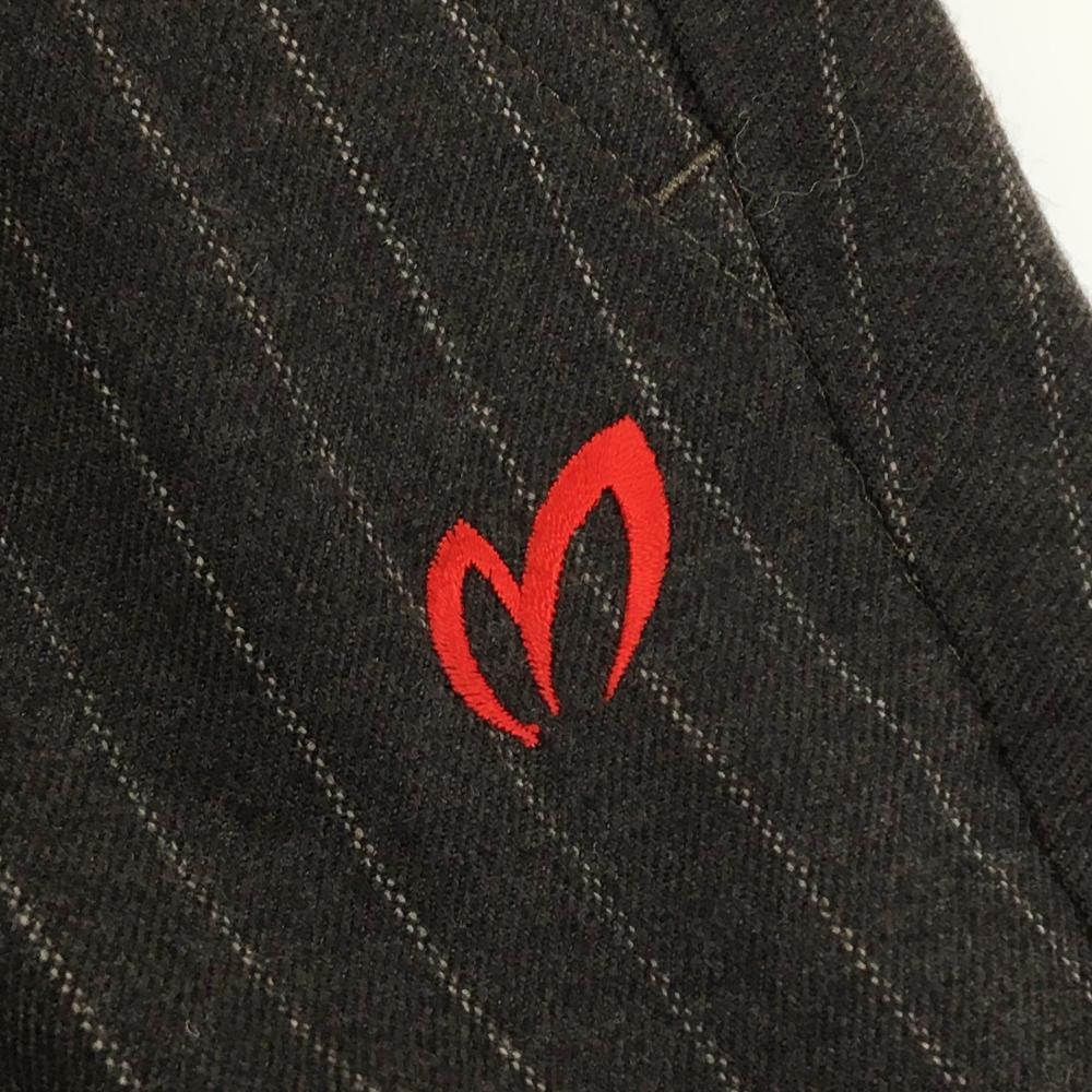 【超美品】マスターバニー ウールパンツ ダークブラウン×白 ストライプ ロゴ刺しゅう メンズ 6(XL) ゴルフウェア MASTER BUNNY EDITION