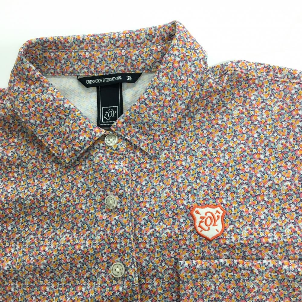 【超美品】ゾーイ 長袖ポロシャツ ピンク×マルチカラー 総柄 LIBERTY レディース 38(M) ゴルフウェア ZOY