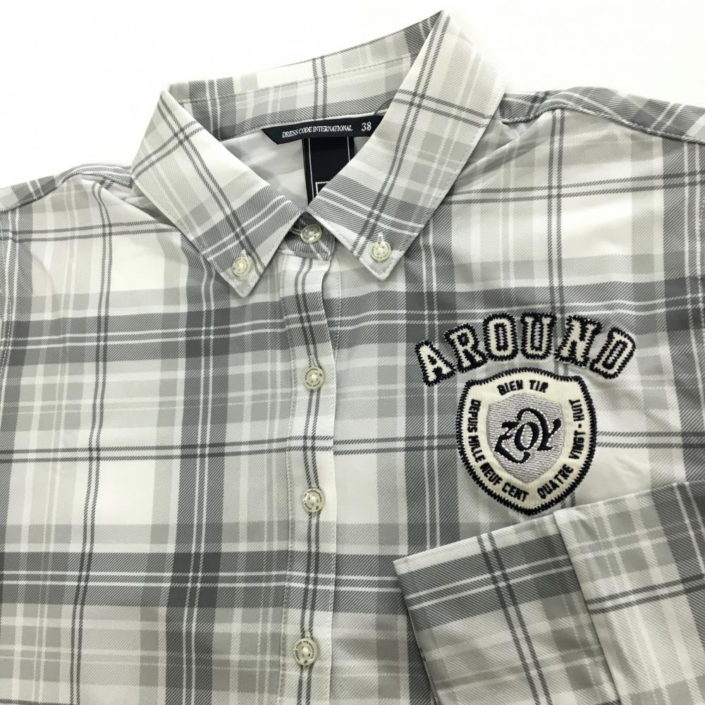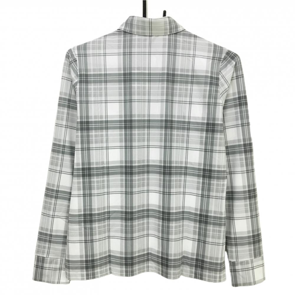 【新品】ゾーイ 長袖ポロシャツ グレー×白 チェック ボタンダウン レディース 38(M) ゴルフウェア ZOY